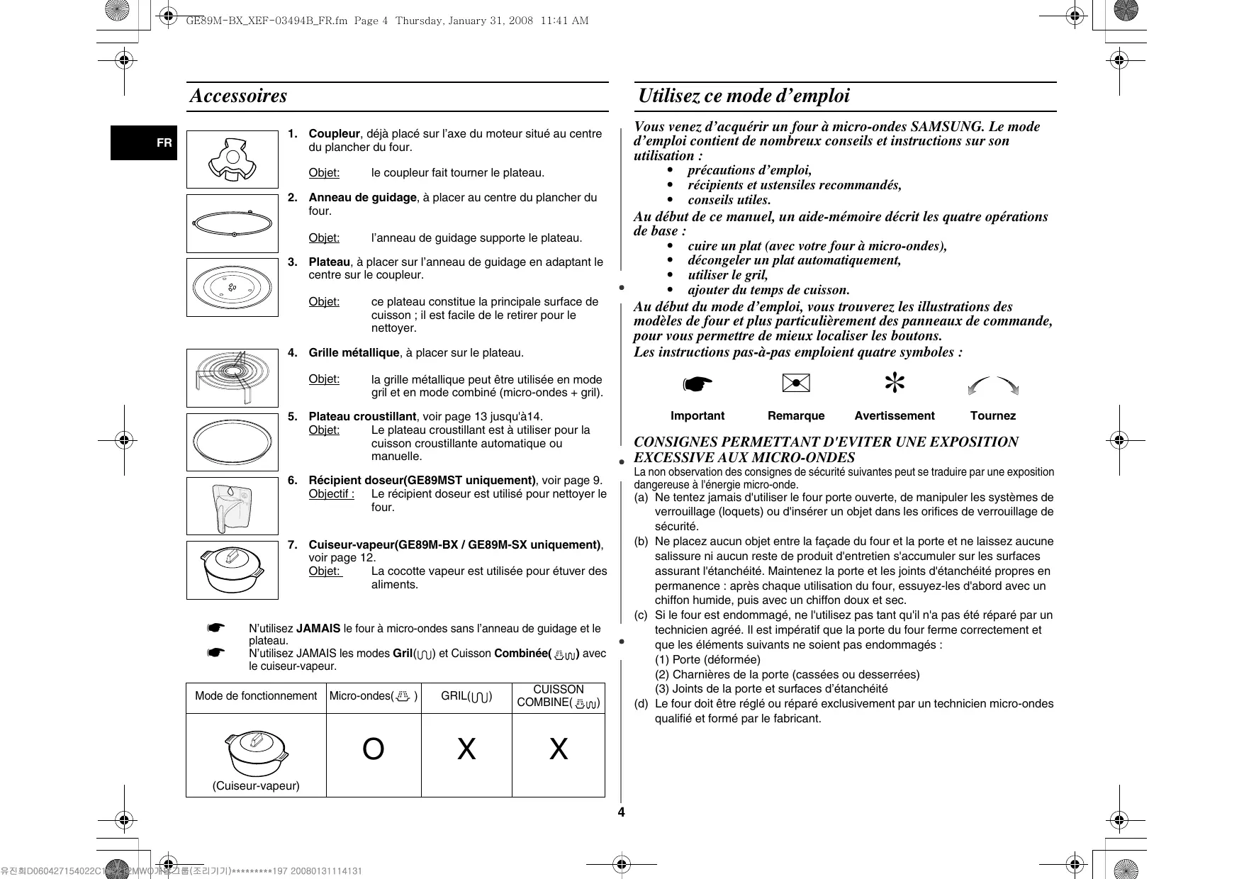 MODE D'EMPLOI GE89M-SX SAMSUNG