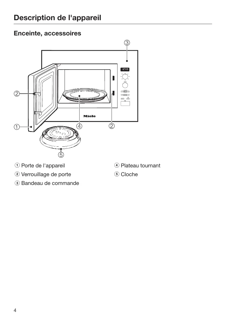 Accessoires fournis Cloche La cloche doit être utilisée en mode micro-ondes seulement. Elle évite aux aliments de se dessécher, accélère le réchauffage de vos plats et protège l'enceinte du four contre les projections. Conseil : Possibilité de commander des accessoires en option dans la boutique en ligne Miele. Vous pouvez aussi vous procurer ces produits auprès du service après-vente Miele (voir à la fin de ce mode d'emploi) ou chez votre revendeur Miele.