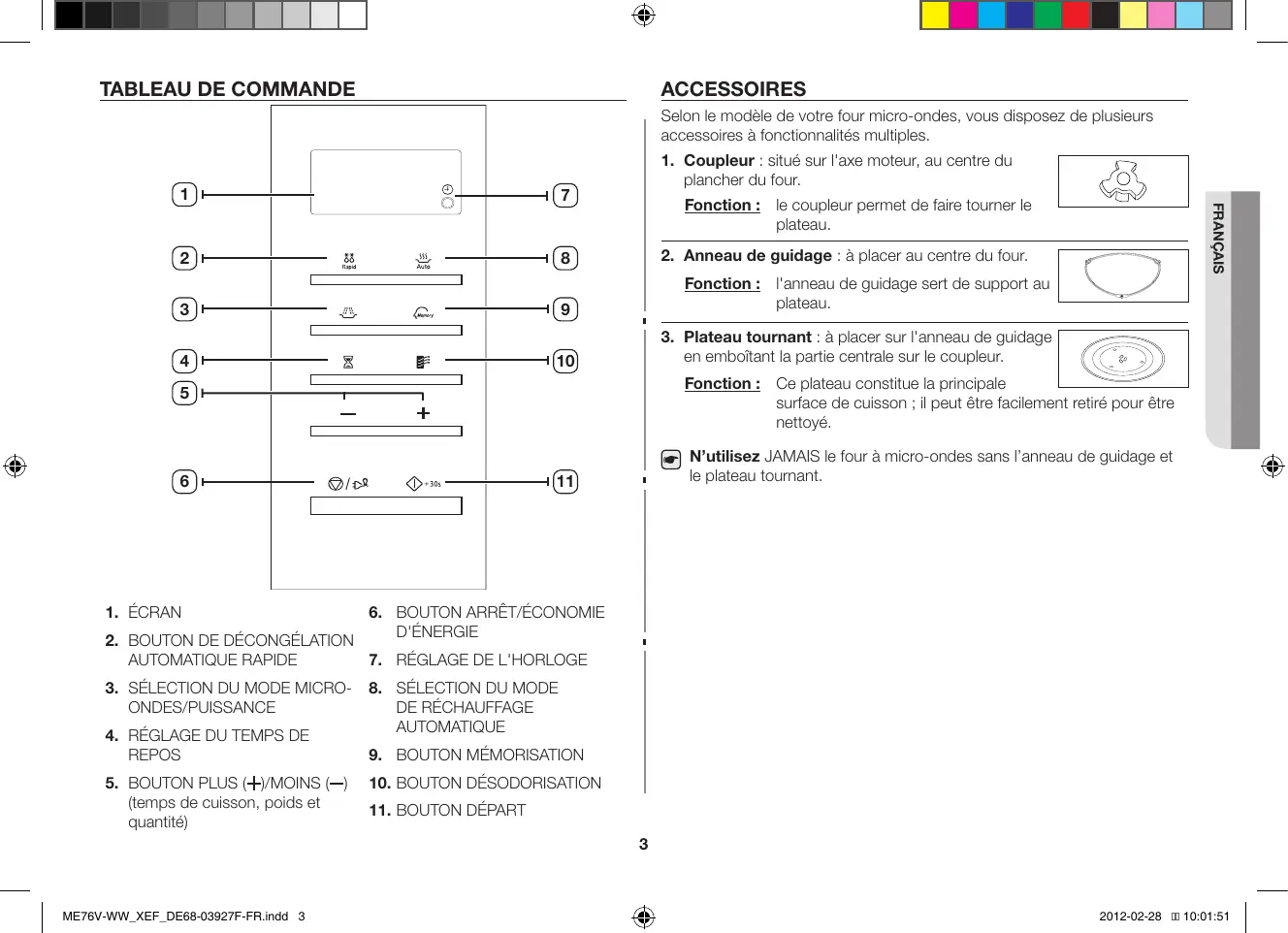 • Tableau de commande p. 3