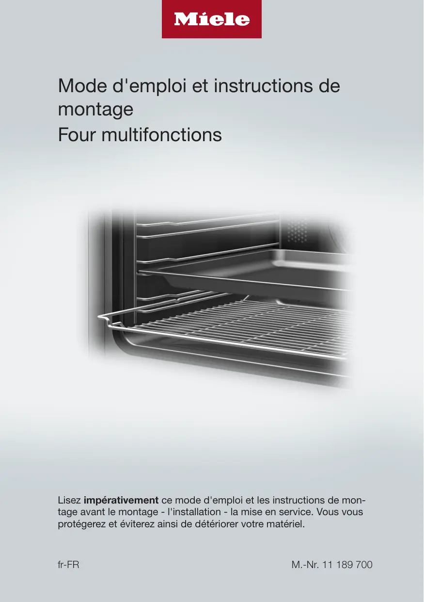 Lisez attentivement le mode d'emploi et les instructions de montage avant de mettre le four en service. Vous y trouverez des informations importantes sur le montage, la sécurité, l'utilisation et l'entretien de cet appareil. Vous vous protégerez et éviterez ainsi de détériorer votre matériel. Conformément à la norme IEC/EN 60335-1, Miele indique expressément de lire impérativement le chapitre pour l'installation du four et de suivre les consignes de sécurité et de mise en garde. Miele ne peut être tenu pour responsable des dommages dus au non-respect des consignes. Veuillez conserver ce document à disposition et le remettre au futur propriétaire en cas de cession de votre appareil.