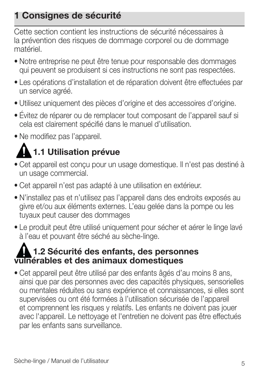 1.2 Sécurité des enfants, des personnes vulnérables et des animaux domestiques.5