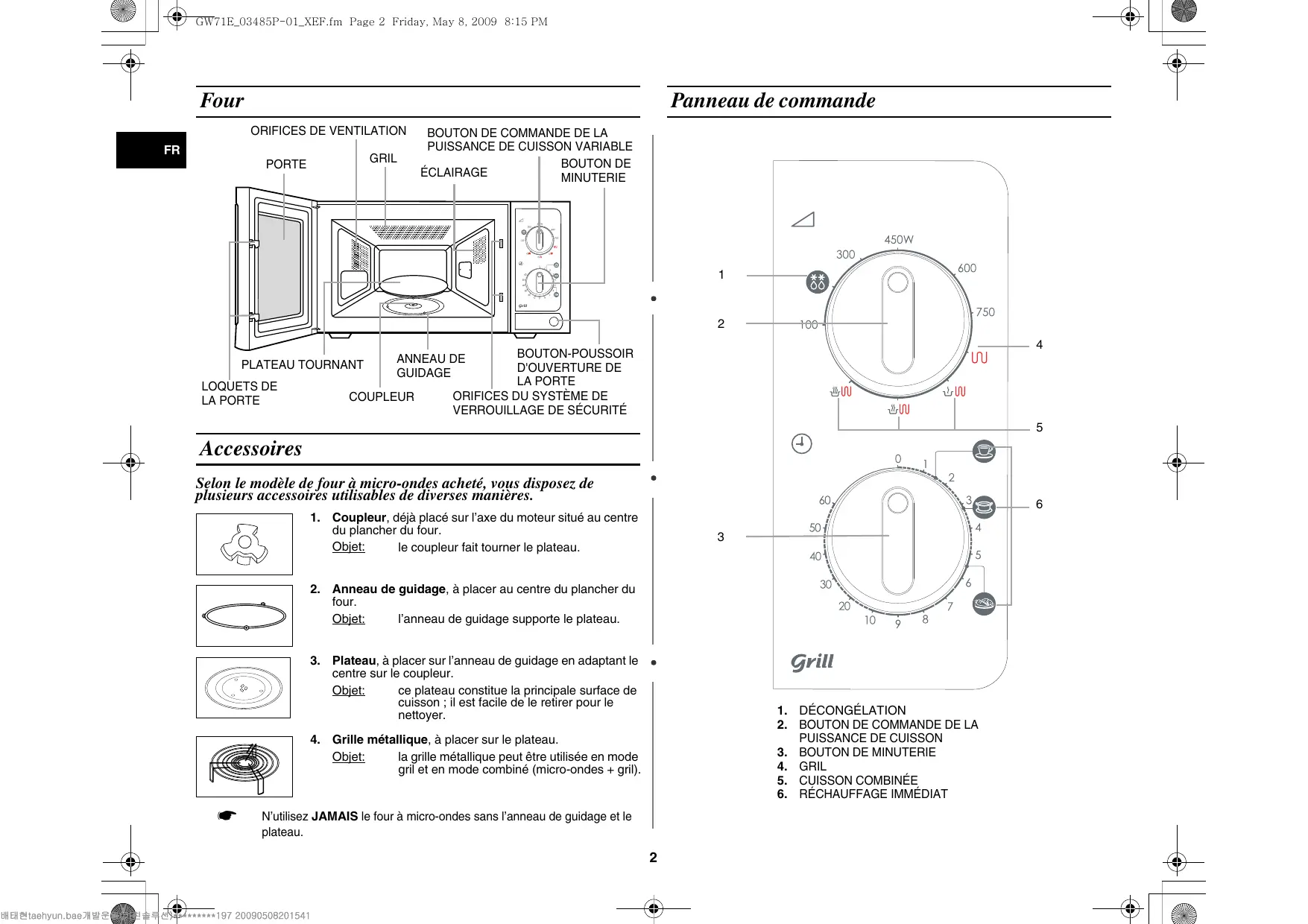 Objet: la grille métallique peut être utilisée en mode gril et en mode combiné (micro-ondes + gril).