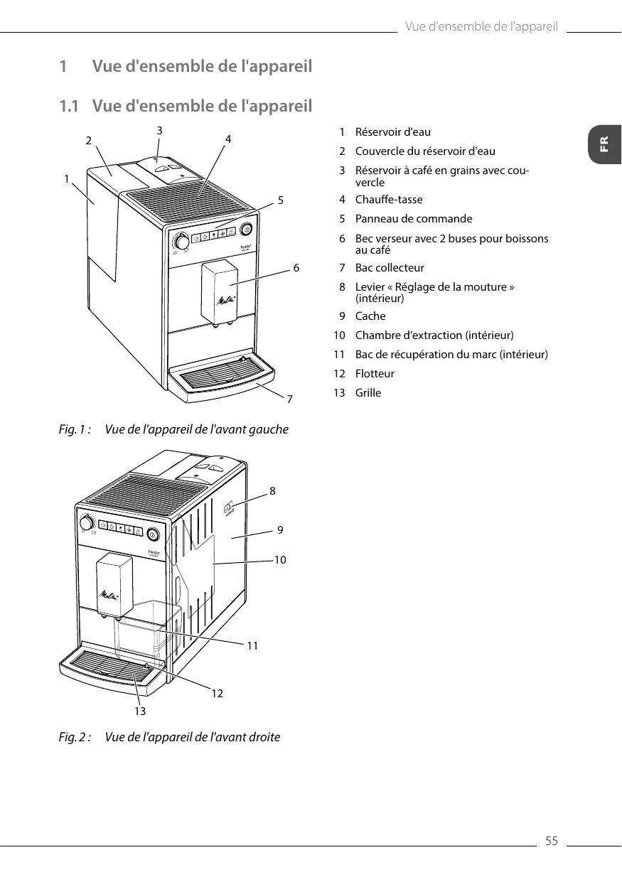 Vue d'ensemble de l'appareil55 1.1 Vue d'ensemble de l'appareil55 1.2 Vue d'ensemble du panneau de commande56