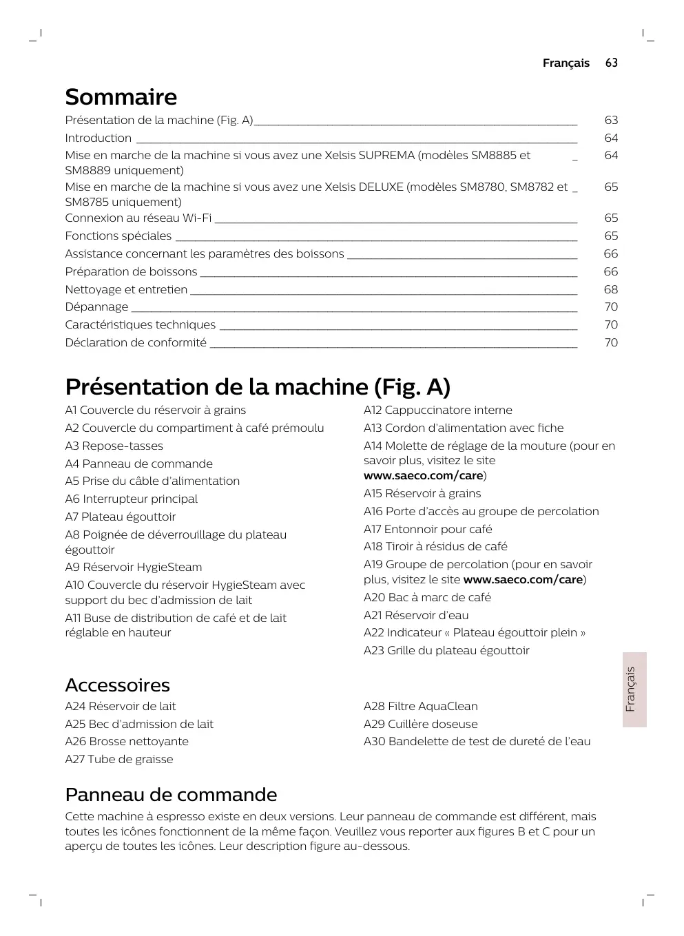 Retrouvez gratuitement la notice de l'appareil XELSIS SM8780 SAECO au format PDF.