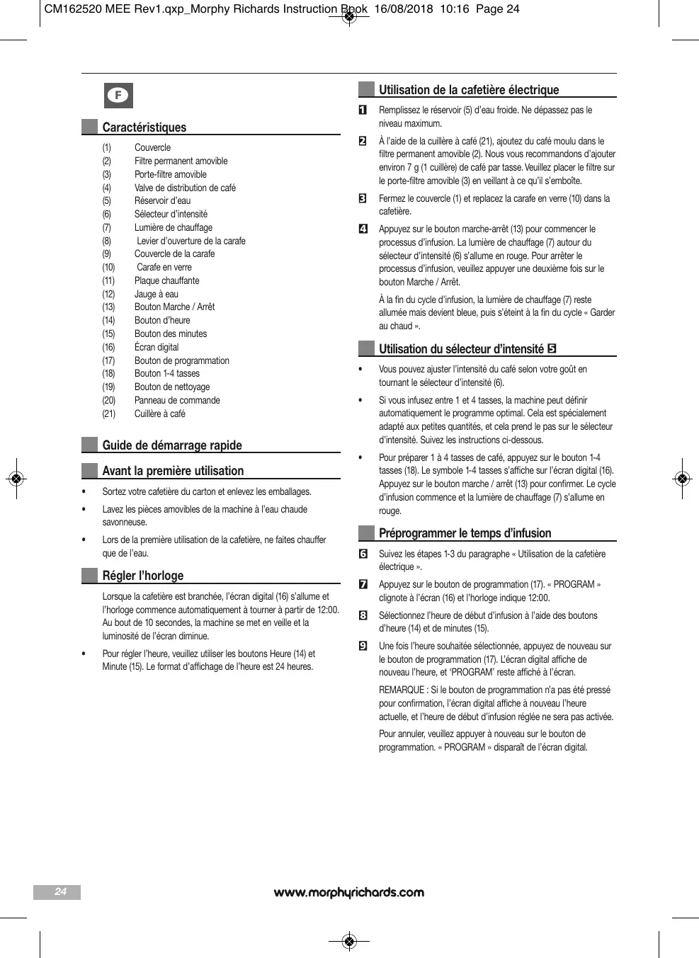 MODE D'EMPLOI 162520 MORPHY RICHARDS