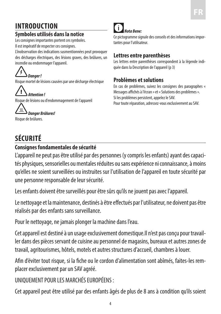 Nota Bene: Utilisez exclusivement le détartrant préco- r le fabricant.