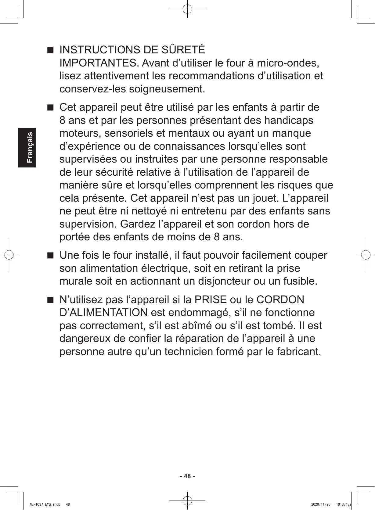 NE-1037 - NE-1037 - Four à micro-ondes PANASONIC - Notice d'utilisation et mode d'emploi gratuit
