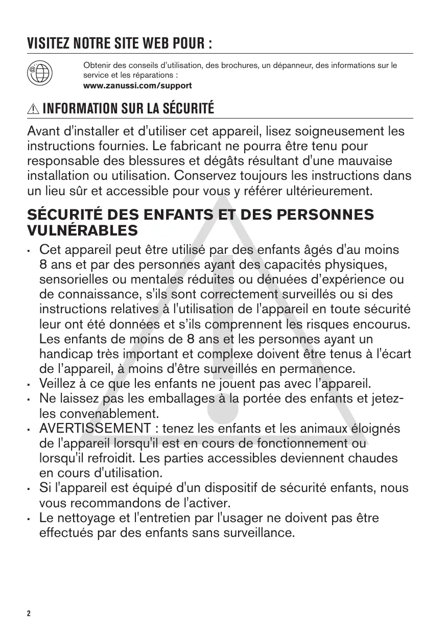 Avant d'instructor et d'utiliser cet apparéil, lisez soigneusement les instructions fournies. Le fabricant ne pourrait être tenu pour responsable des blessures et dégâtés résultats d'une mauvaise installation ou utilisation. Conservez toujours les instructions dans un lieu sur et accessible pour vous y référer ultérieurement.