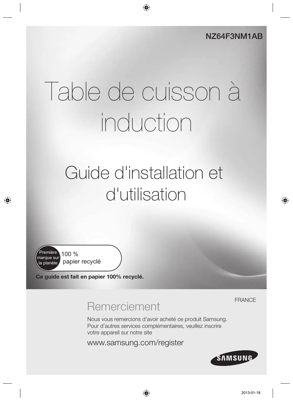 NZ64F3NM1AB, NZ64F3NM1BB/UR, NZ64K5747BK/EF - Plaque de cuisson SAMSUNG - Notice d'utilisation et mode d'emploi gratuit