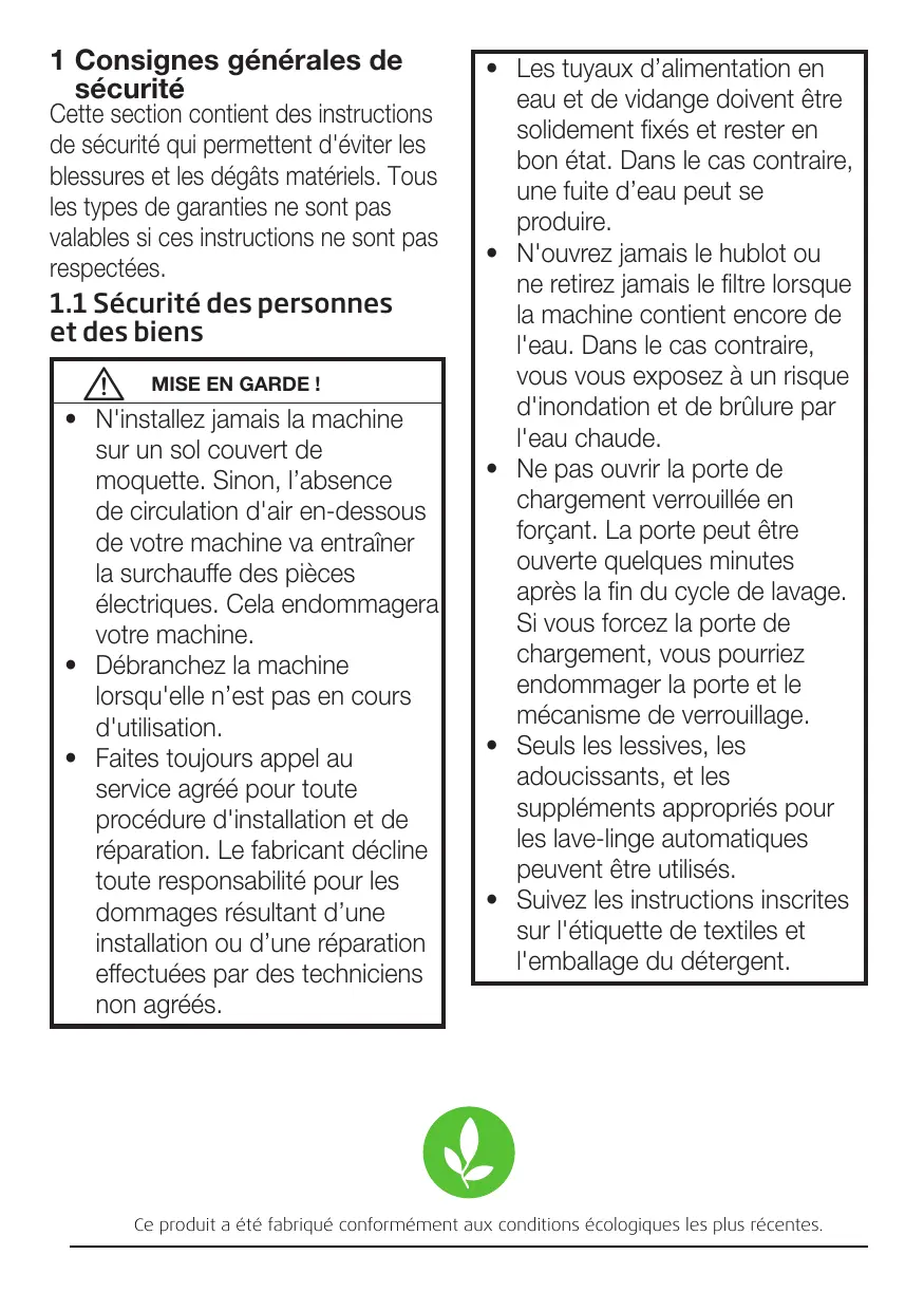 - Suivez les instructions inscrites sur l'étiquette de textiles et l'emballage du détergent. Ce produit a été fabriqué conformément aux conditions écologiques les plus récentes.