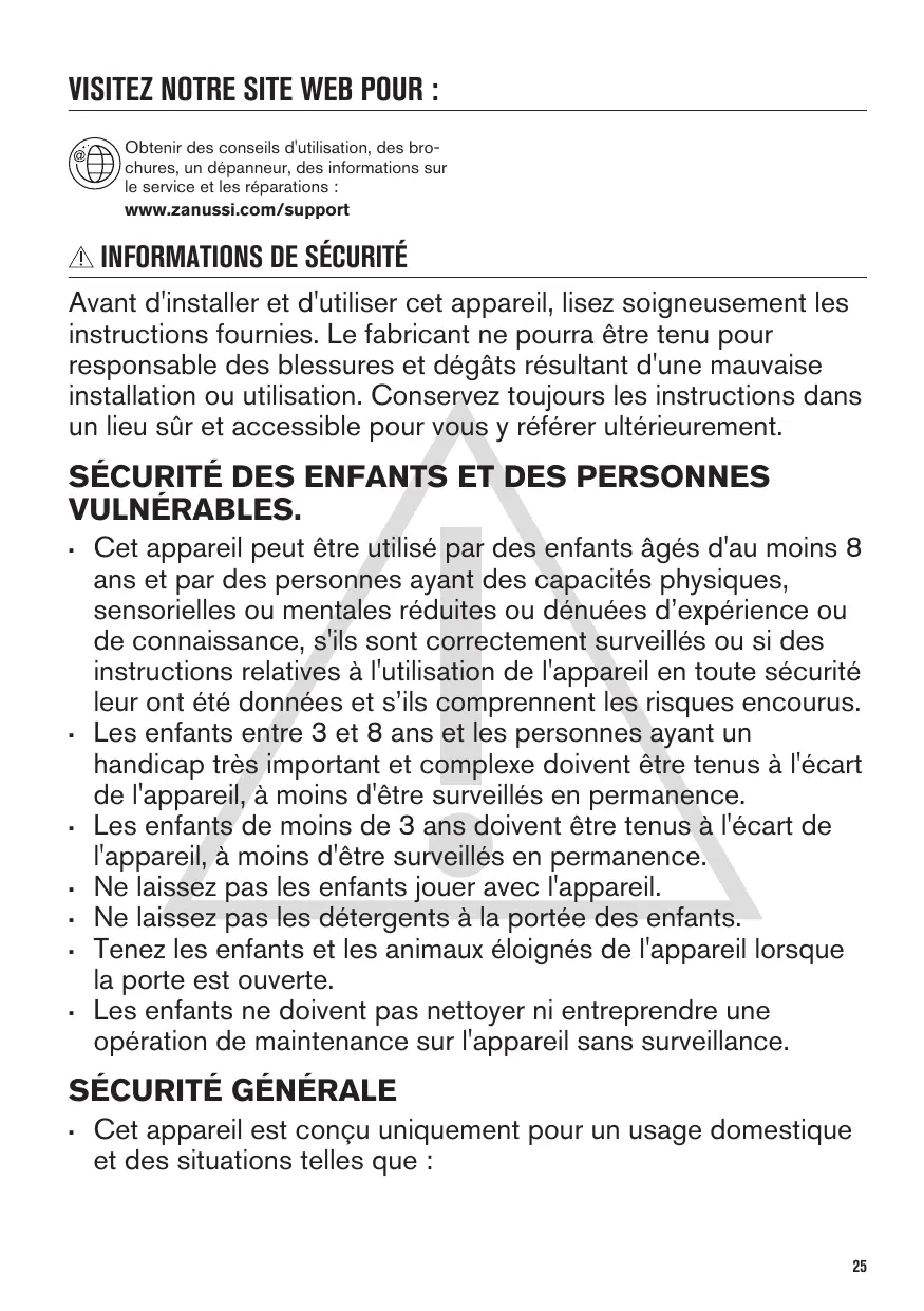 VISITEZ NOTRE SITE WEB POUR : Obtenir des conseils d'utilisation, des brochures, un dépanneur, des informations sur le service et les réparations : www.zanussi.com/support