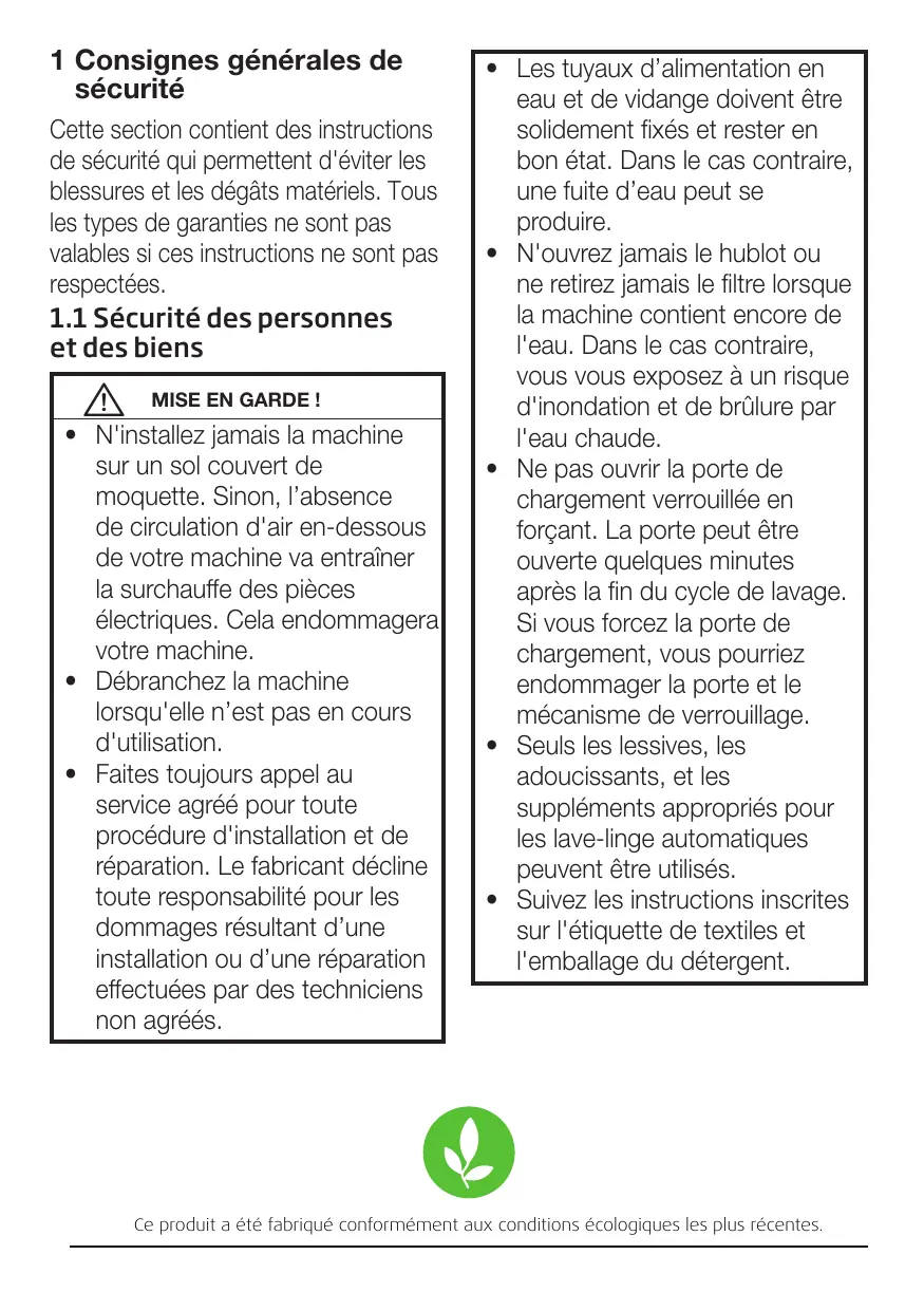 Lave-linge Manuel d‘utilisation Wasmachine Gebruiker Handleiding WTV6612BC1 FR / NL Numéro de document : 2820528792_FR/ 21-07-20.(17:07) 1 Consignes générales de sécurité Cette section contient des instructions de sécurité qui permettent d'éviter les blessures et les dégâts matériels. Tous les types de garanties ne sont pas valables si ces instructions ne sont pas respectées.