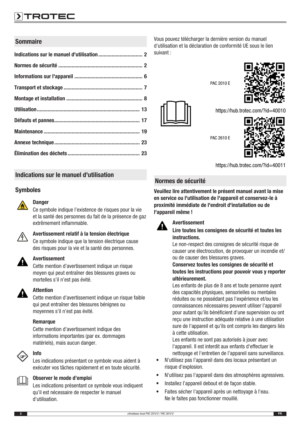 MODE D'EMPLOI PAC 2610 E TROTEC