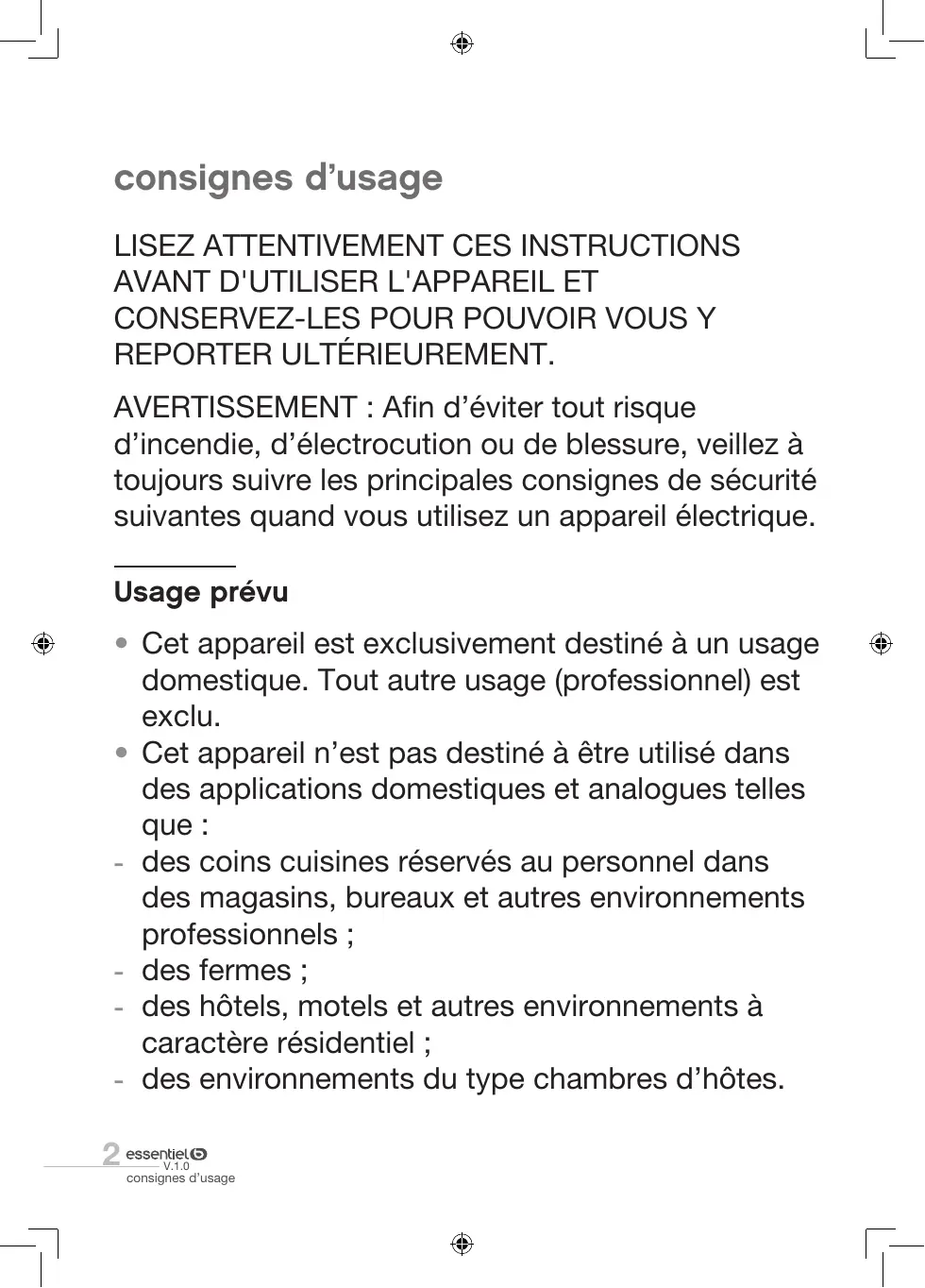 • Les pièces accessibles peuvent devenir chaudes pendant l'utilisation. Les jeunes enfants doivent être tenus à l'écart. V.1.0 consignes d’usage