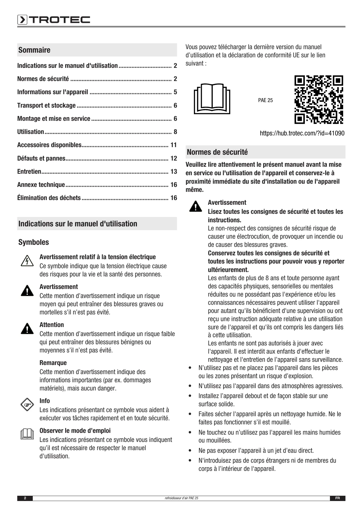 Retrouvez gratuitement la notice de l'appareil PAE 25 TROTEC au format PDF.