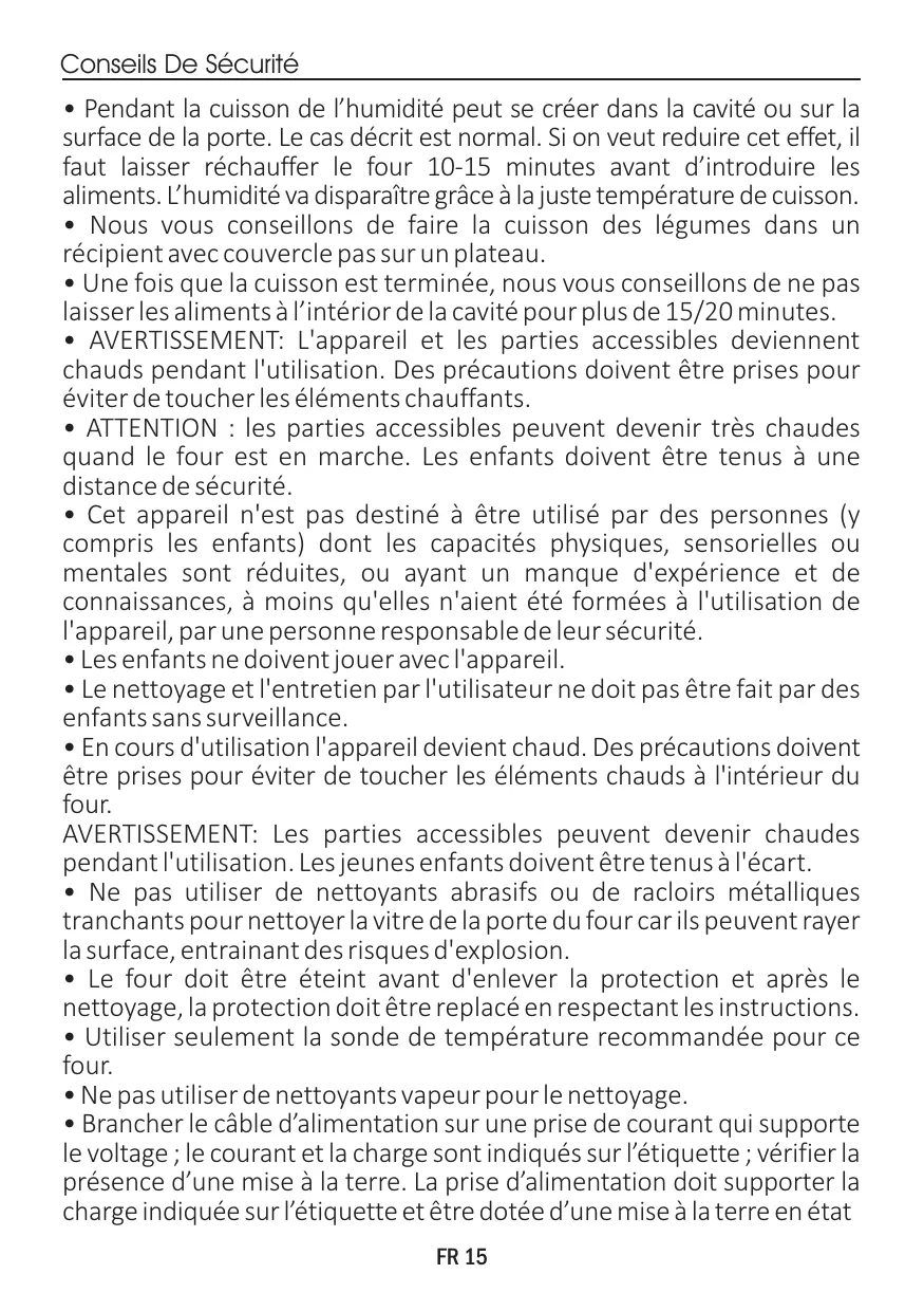 | Type de cuisson | Chaleur tournante / statique |