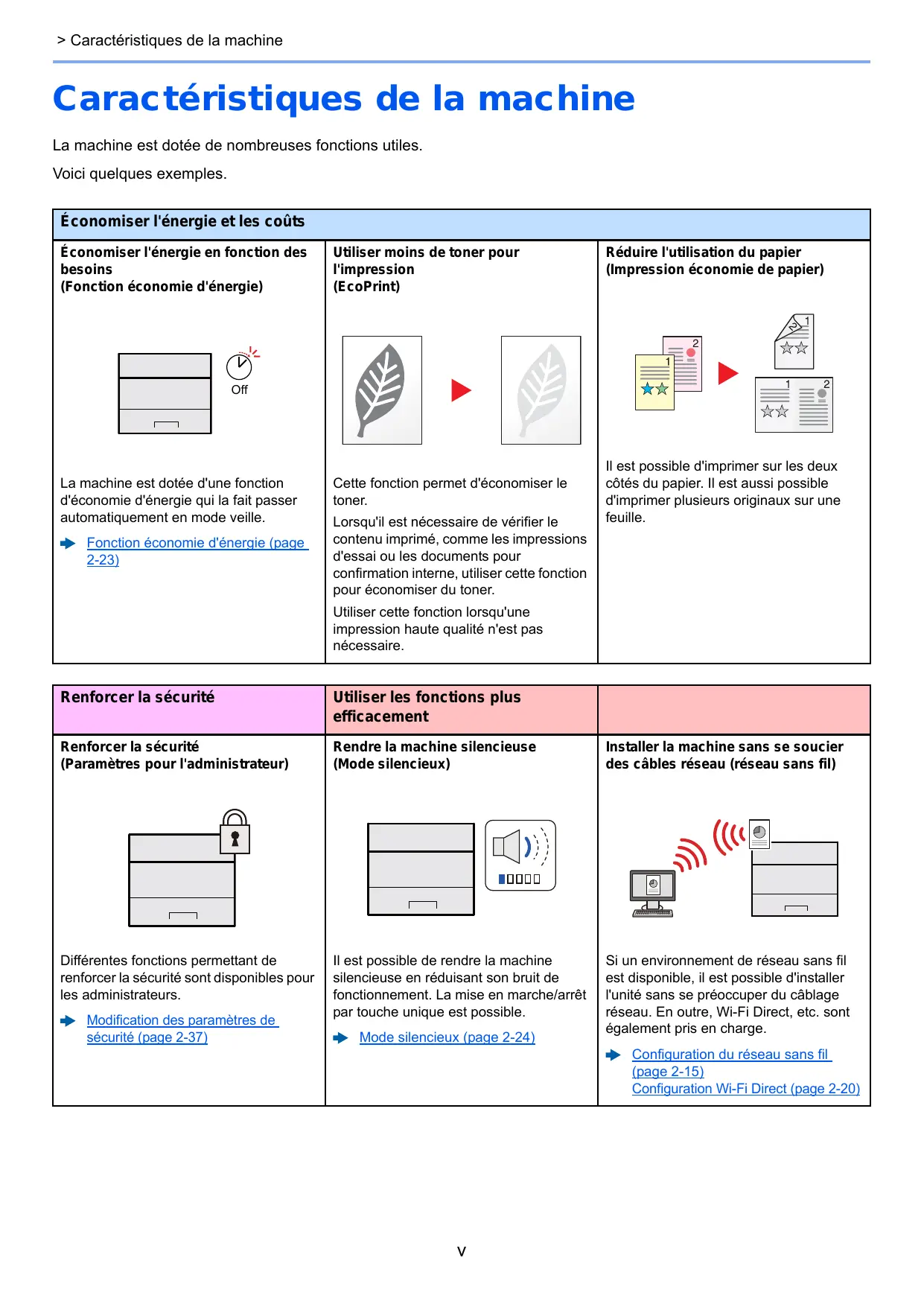 La machine est dotée d'une fonction d'économie d'énergie qui la fait passer automatiquement en mode veille. Fonction économie d'énergie (page 2-23)