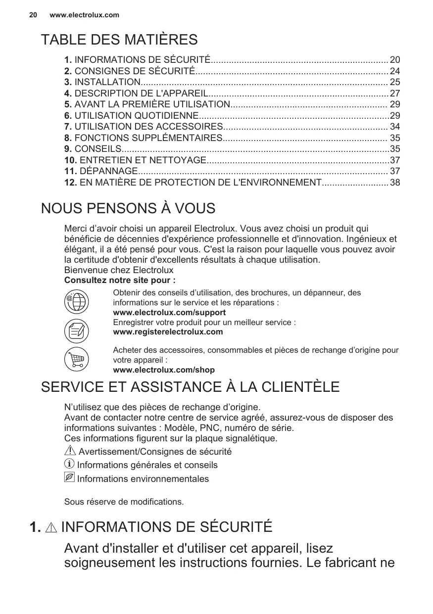 élégant, il a été pensé pour vous. C'est la raison pour laquelle vous pouvez avoir la certitude d'obtenir d'excellents résultats à chaque utilisation. Bienvenue chez Electrolux Consultez notre site pour :