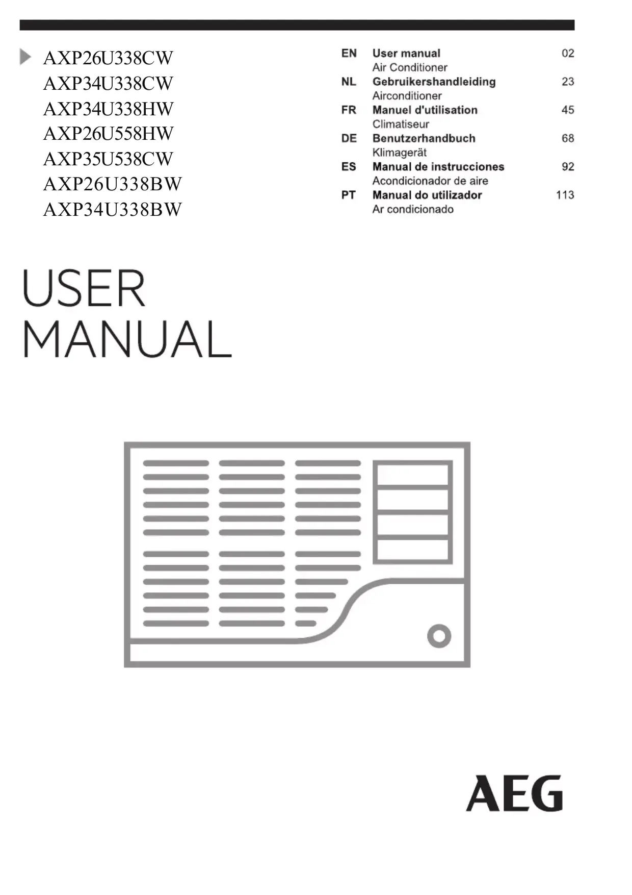 AXP34U338CW - Climatiseur portable AEG-ELECTROLUX - Notice d'utilisation et mode d'emploi gratuit