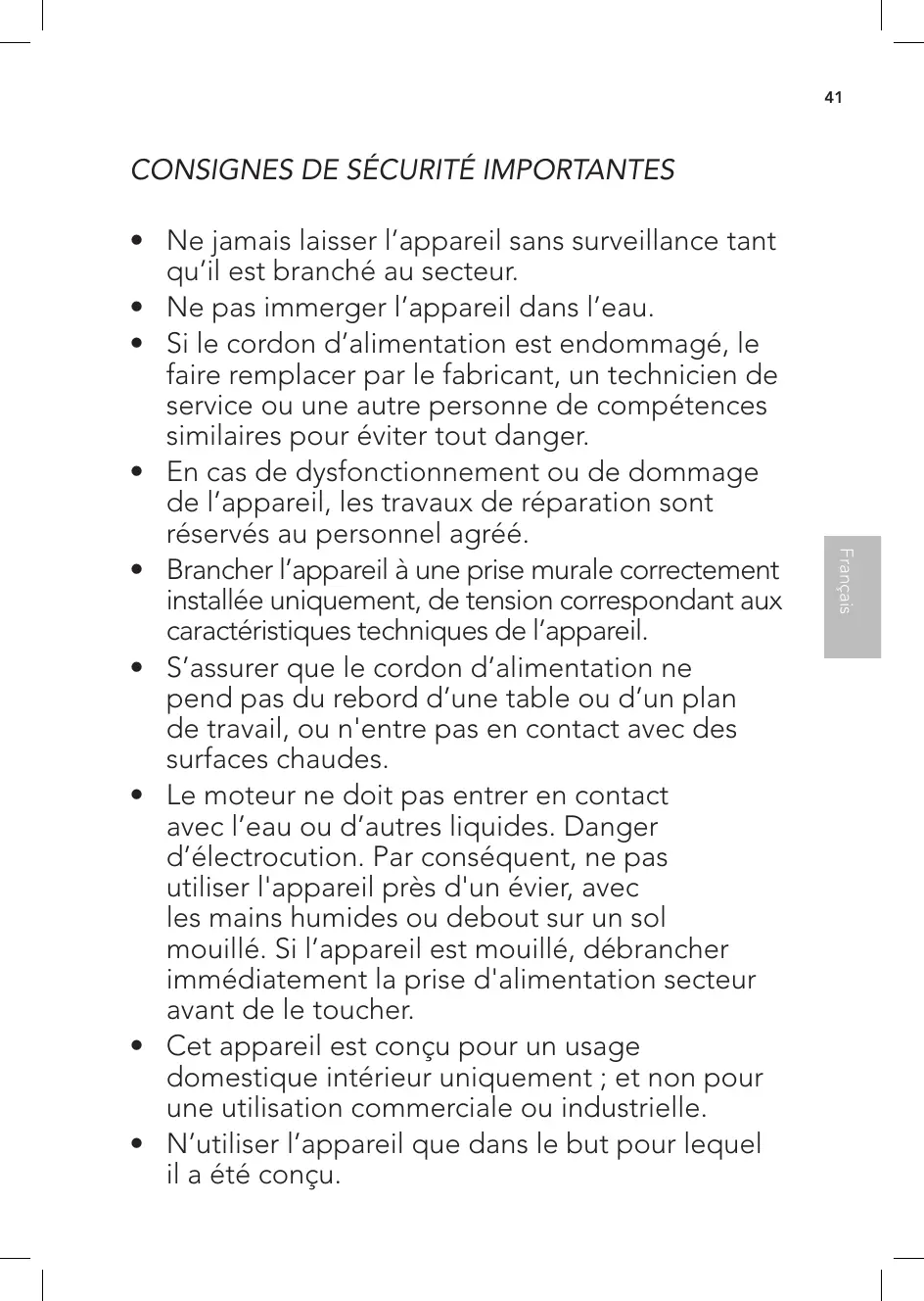 • Ne jamais poser les mains sur la carafe du mixeur tant que le moteur est en marche.