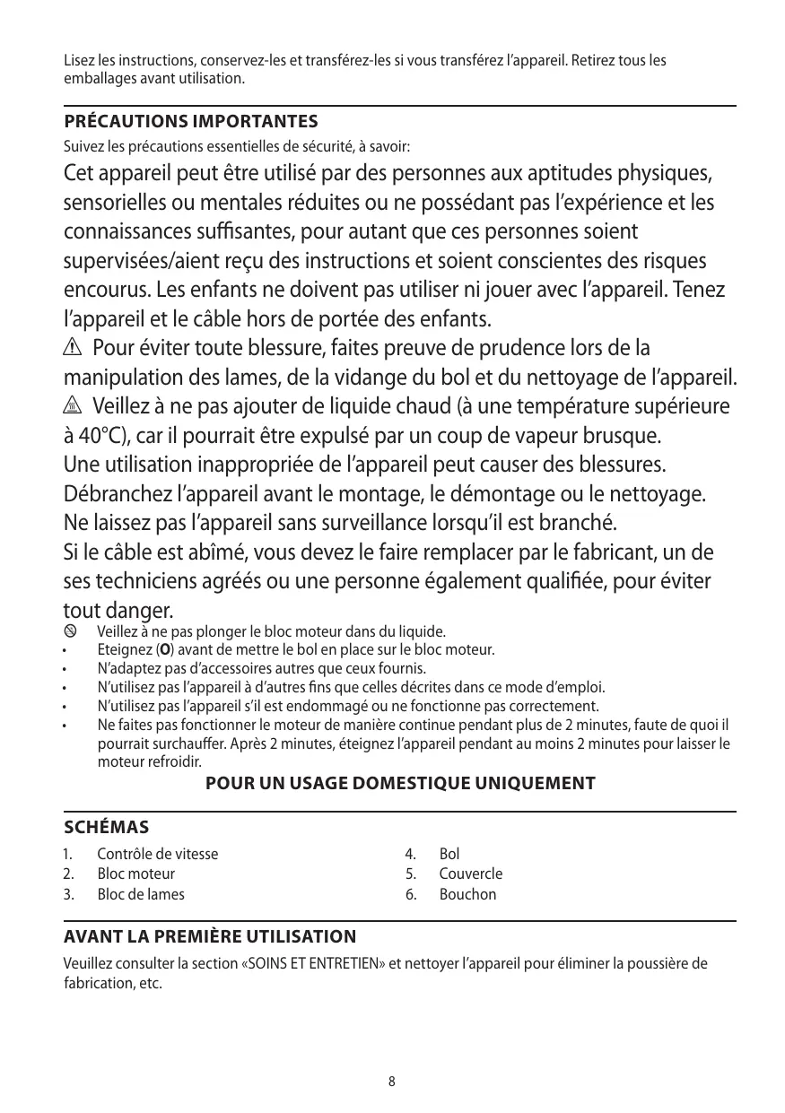 POUR UN USAGE DOMESTIQUE UNIQUEMENT SCHÉMAS
