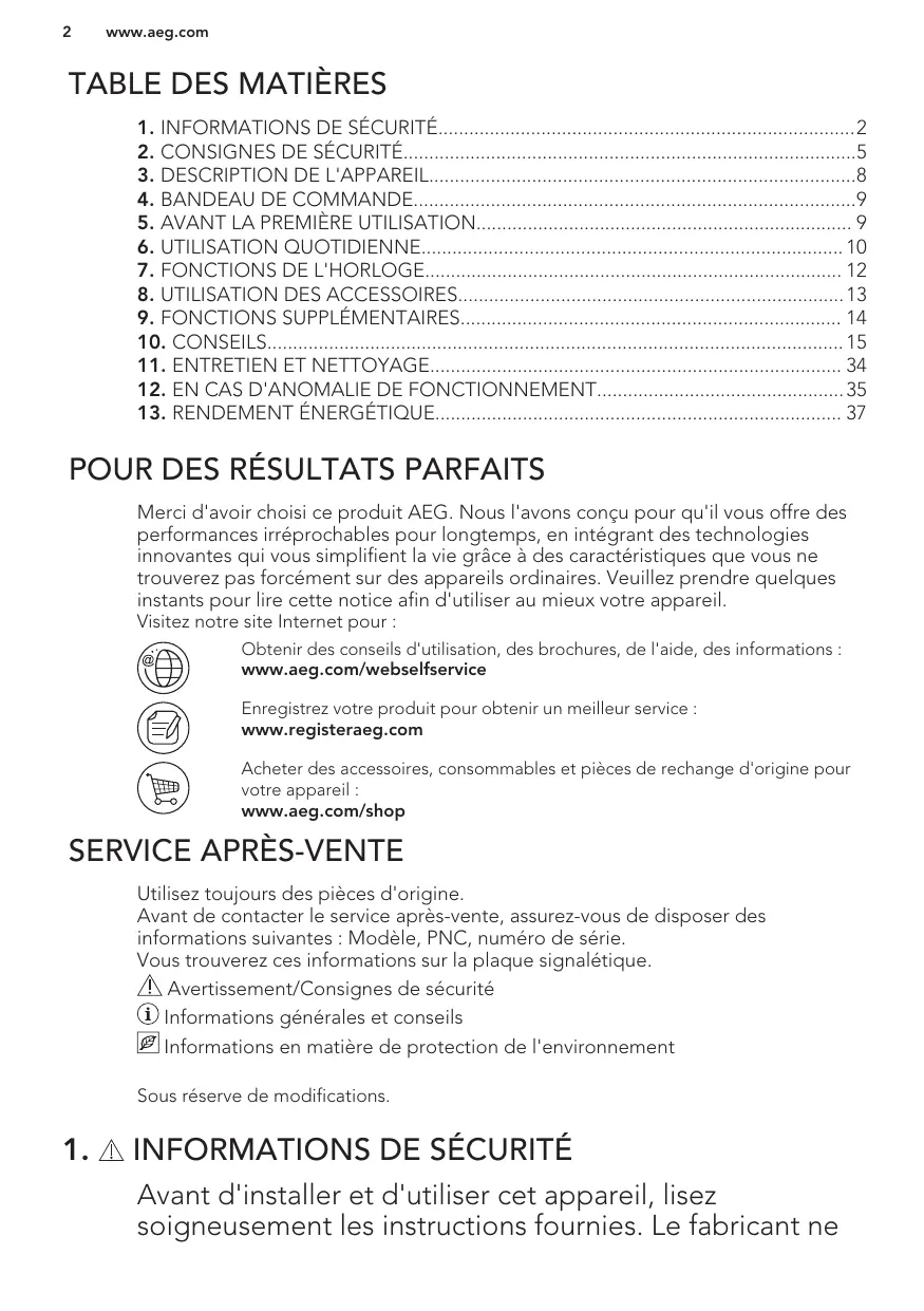 Acheter des accessoires, consommables et pieces de rechange d'origine pour votre apparéil : www.aeg.com/shop