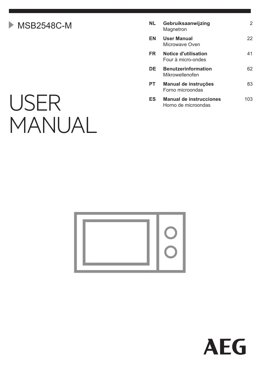 NL Gebruiksaanwijzing Magnetron EN User Manual 22 Microwave Oven FR Notice d'utilisation 41 Four à micro-ondes DE Benutzerinformation 62 Mikrowellenofen PT Manual de instruções 83 Forno microondas ES Manual de instrucciones 103 Horno de microondas