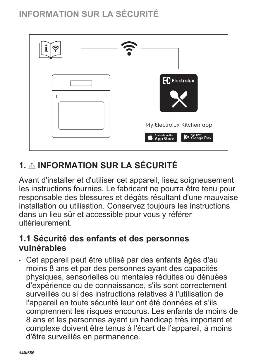 Veillez à ce que les enfants ne jouent pas avec l’appareil et les appareils mobiles avec My Electrolux Kitchen .