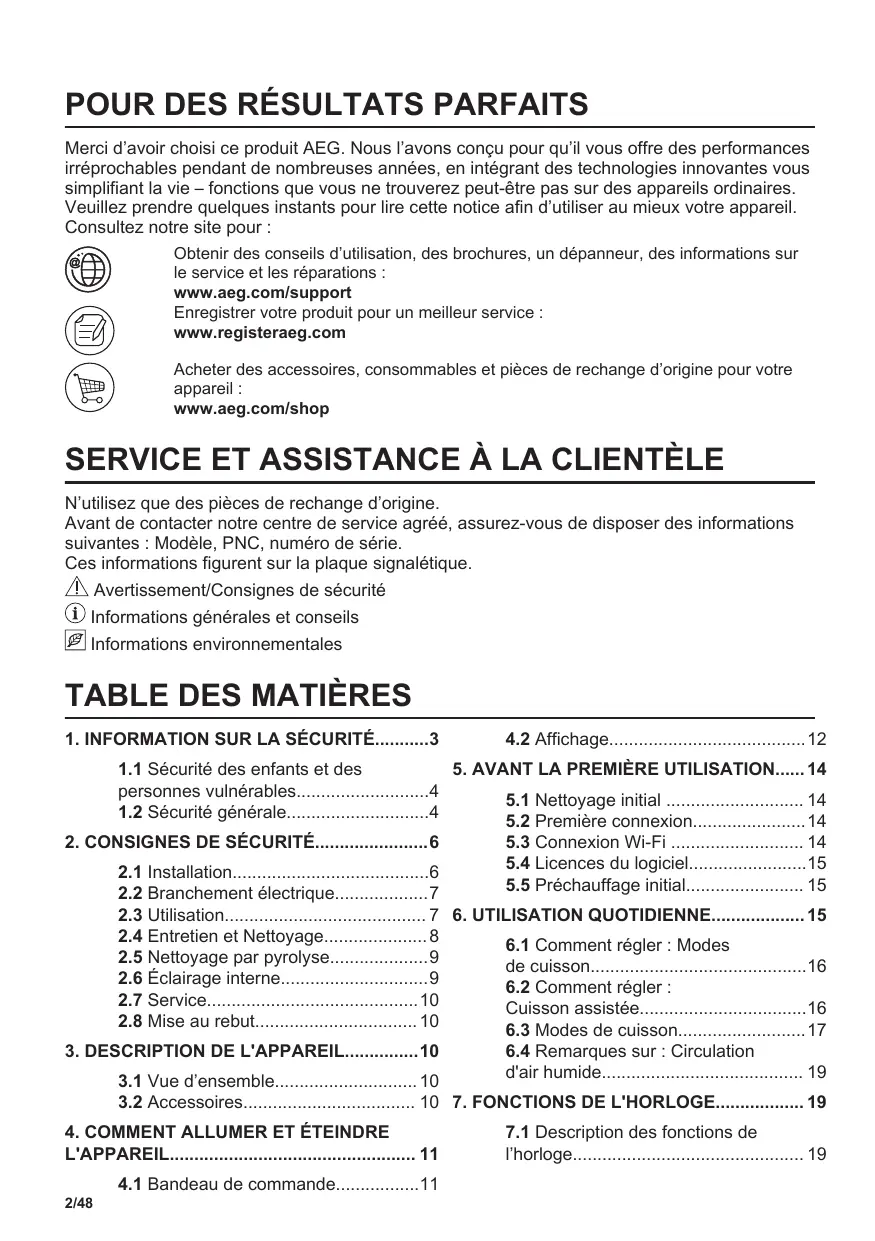 Merci d'avoir besoin ce produit AEG. Nous l'avons conçu pour qu'il vous offre des performances irréprochables pendant de nombreuses années, en intégrant des technologies innovantes vous simplifier la vie - fonctions que vous ne trouverez peut-être pas sur des apparciels ordinaires. Veuillez prendre quelques instantes pour生存 cette notice afin d'utiliser au mieux votre apparéil. Consultez notre site pour :