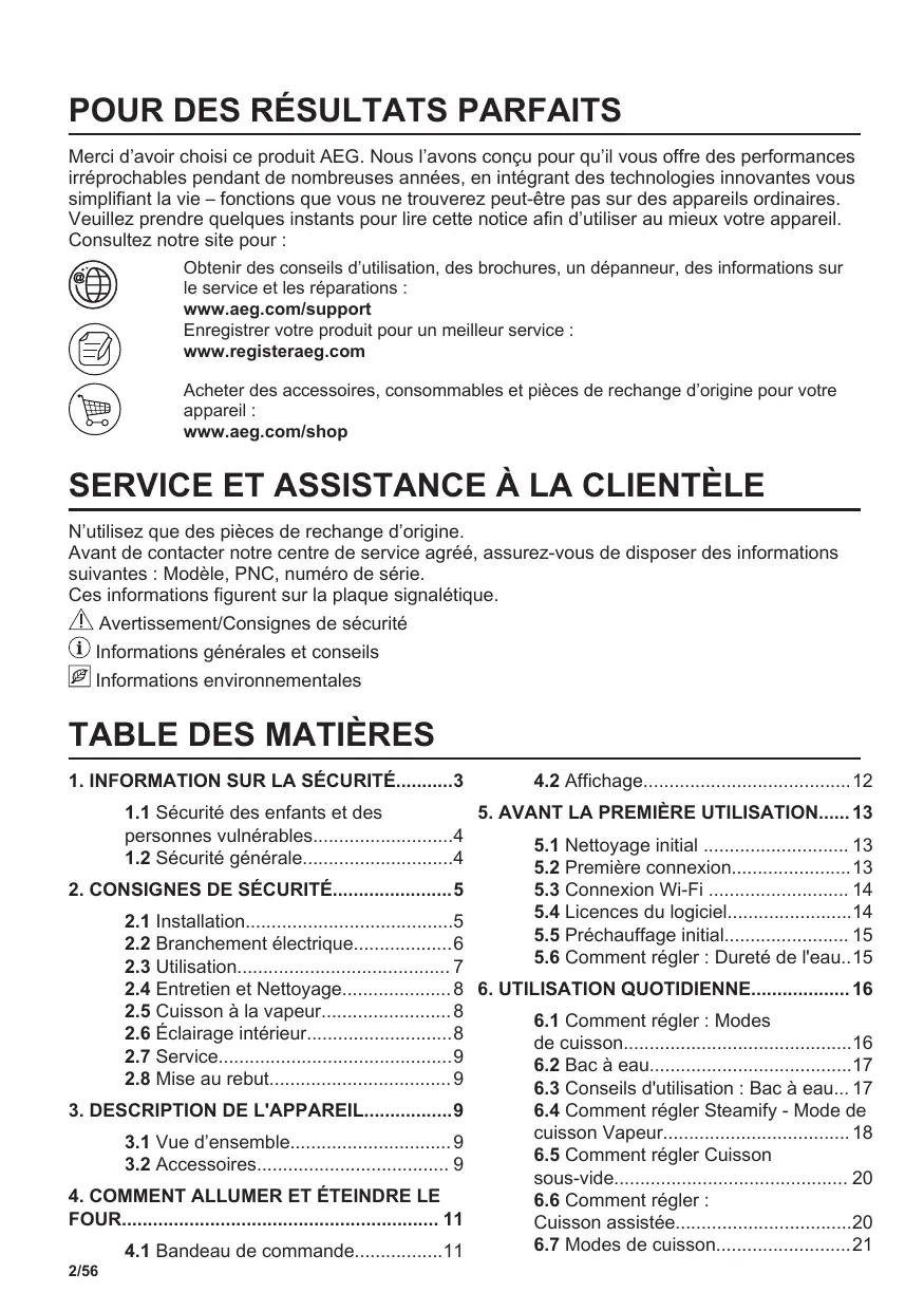 Merci d'avoir besoin ce produit AEG. Nous l'avons conçu pour qu'il vous offre des performances irréprochables pendant de nombreuses années, en intégrant des technologies innovantes vous simplifier la vie - fonctions que vous ne trouverez peut-être pas sur des apparciels ordinaires. Veuillez prendre quelques instantes pour生存 cette notice afin d'utiliser au mieux votre apparéil. Consultez notre site pour :