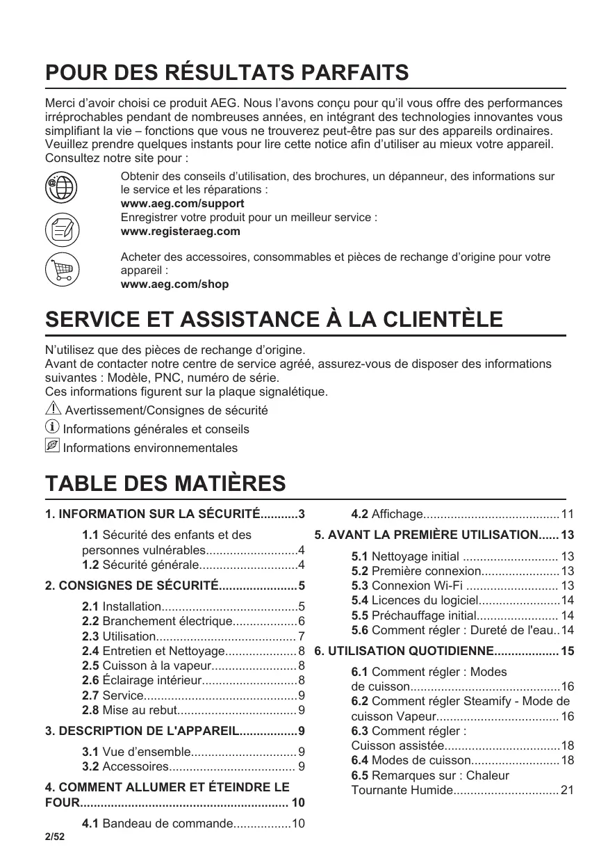 Merci d'avoir besoin ce produit AEG. Nous l'avons conçu pour qu'il vous offre des performances irréprochables pendant de nombreuses années, en intégrant des technologies innovantes vous simplifier la vie - fonctions que vous ne trouverez peut-être pas sur des apparciels ordinaires. Veuillez prendre quelques instantes pour生存 cette notice afin d'utiliser au mieux votre apparéil. Consultez notre site pour :