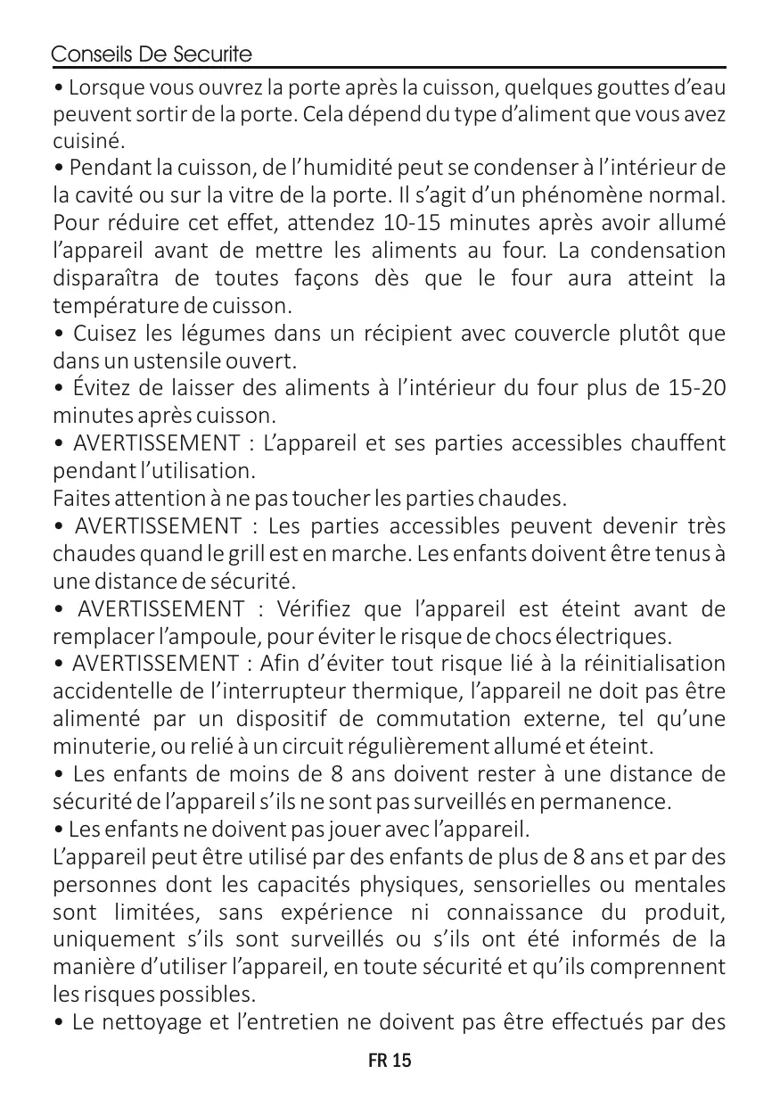 - Le nettoyage et l’entretien ne doivent pas être effectués par des FR 15 enfants sans surveillance.