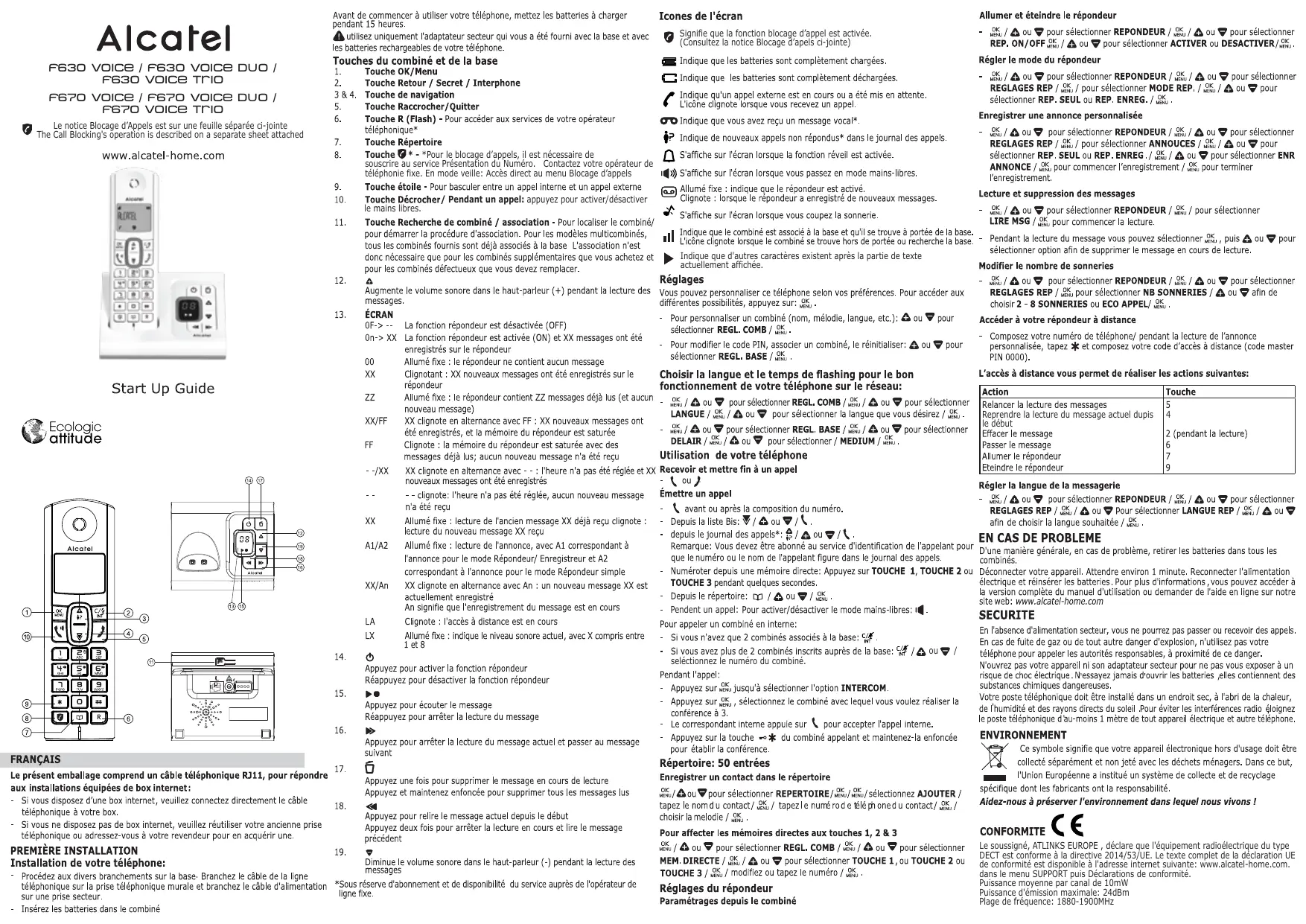 F670 VOICE - Téléphone DECT ALCATEL - Notice d'utilisation et mode d'emploi gratuit