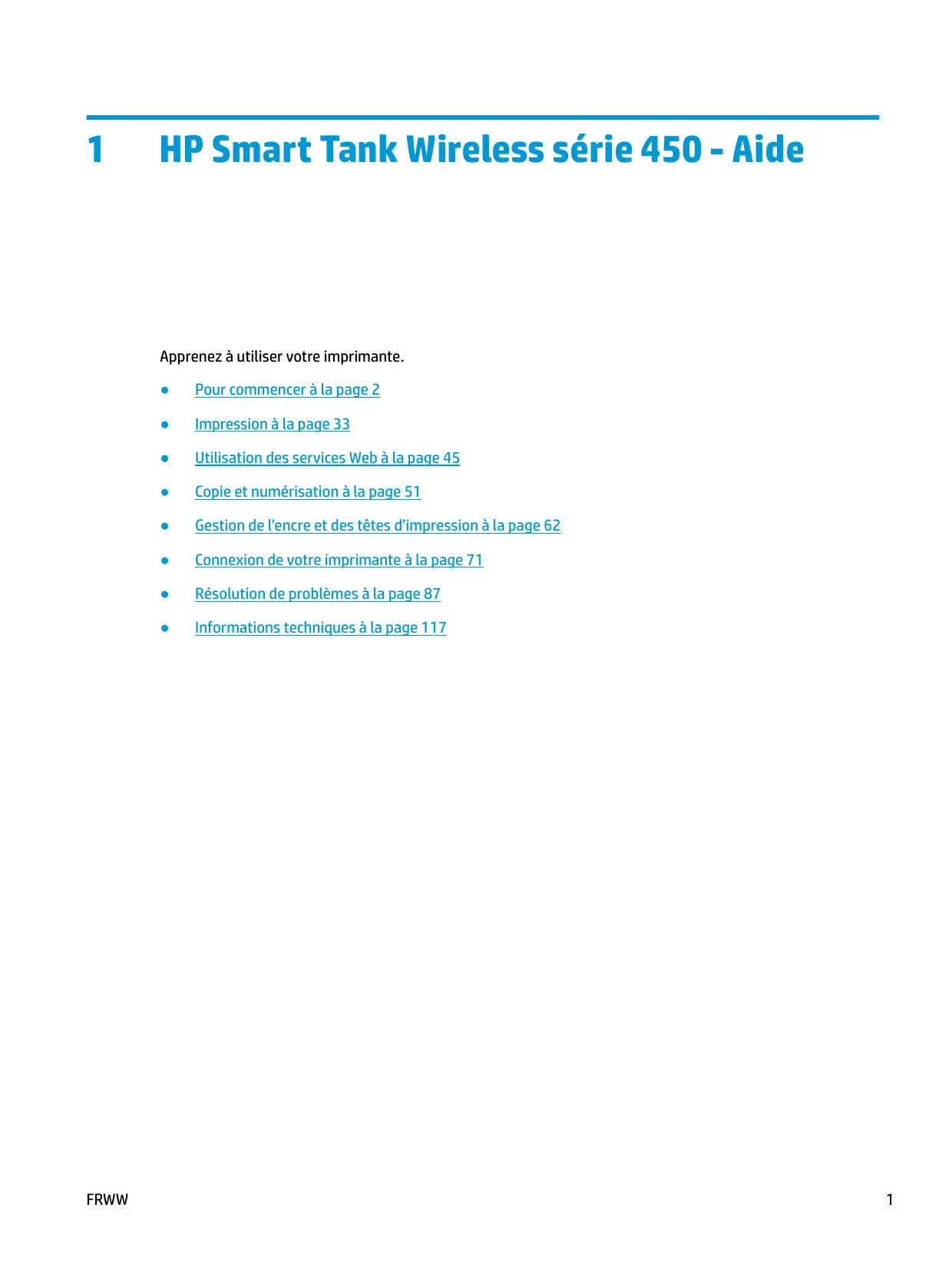 HP Smart Tank Wireless série 450 - Aide Apprenez à utiliser votre imprimante. FRWW