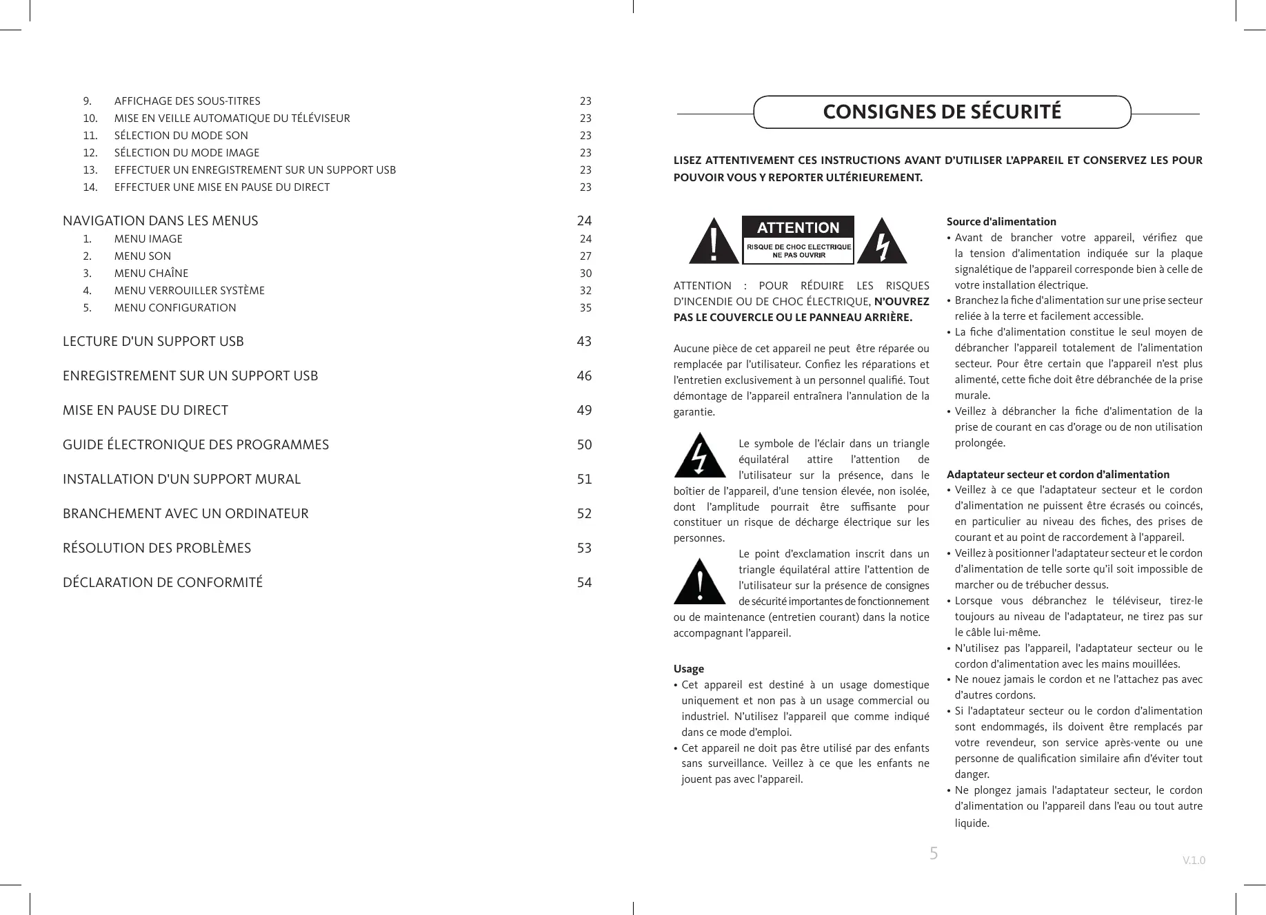 Notice d’utilisation Téléviseur LCD 24-HD-CAC-910 SOMMAIRE SOMMAIRE