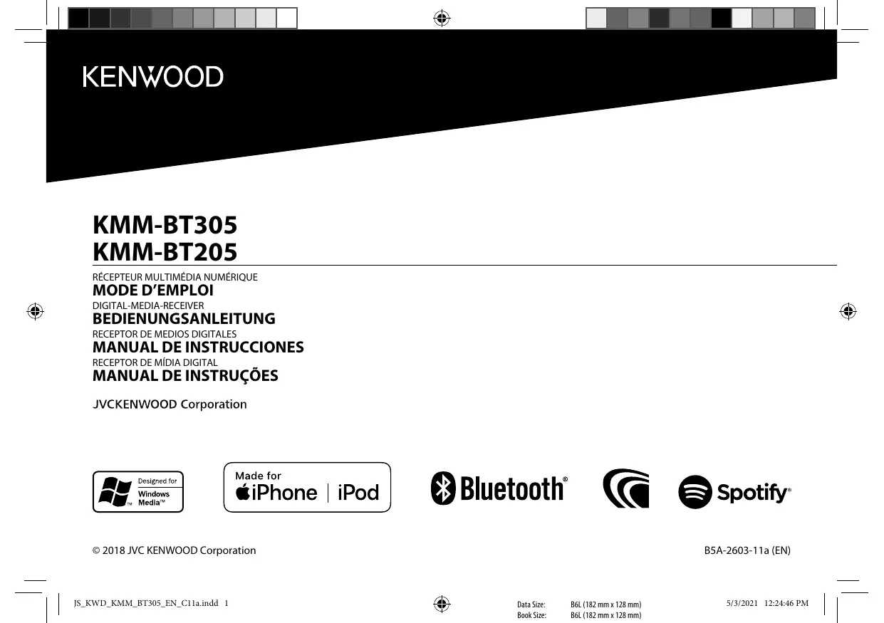 Téléchargez la notice de votre Autoradio Bluetooth au format PDF gratuitement ! Retrouvez votre notice KMM-BT205 - KENWOOD et reprennez votre appareil électronique en main. Sur cette page sont publiés tous les documents nécessaires à l'utilisation de votre appareil KMM-BT205 de la marque KENWOOD.