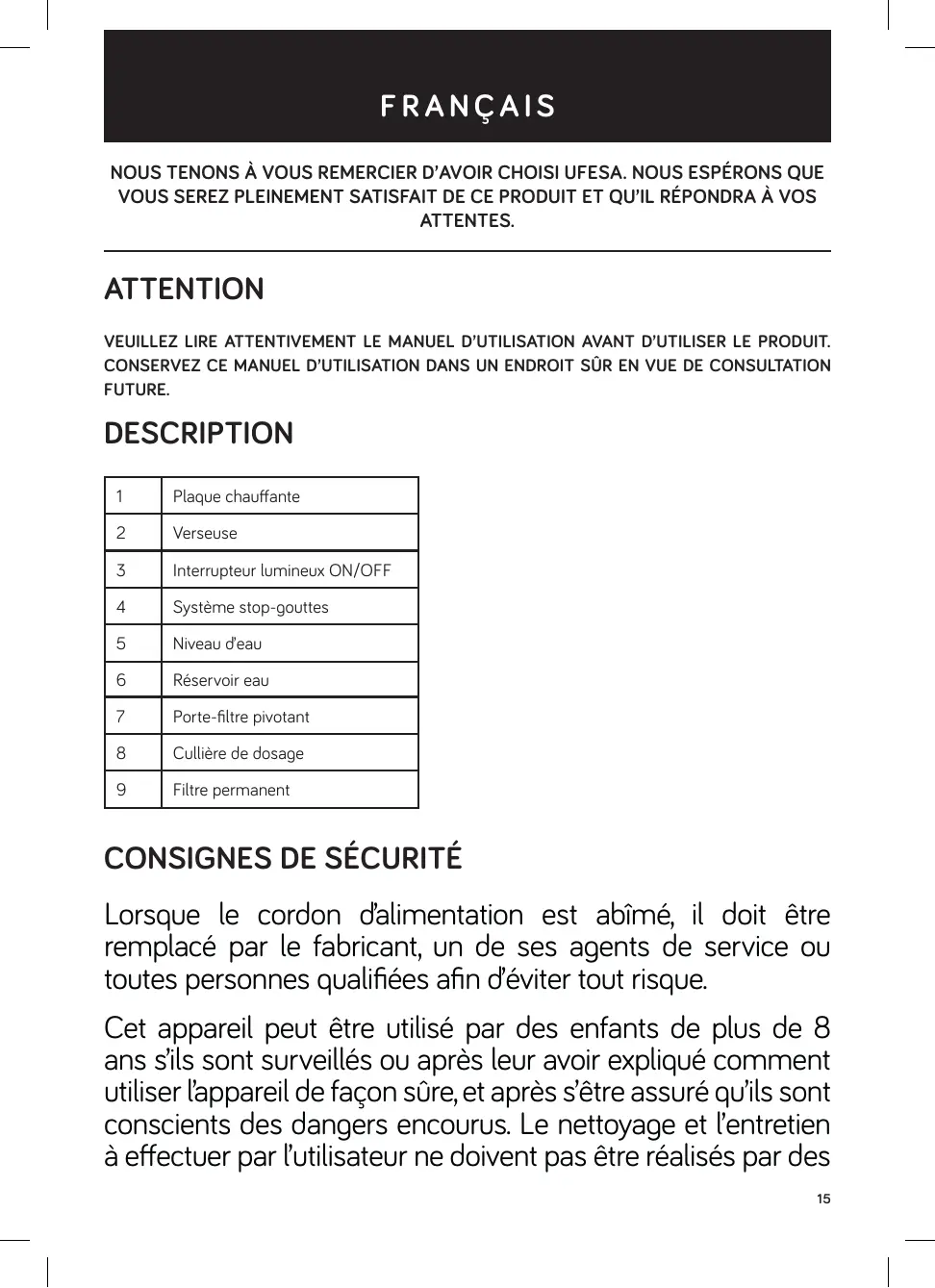 CG7212 - Cafetière UFESA - Notice d'utilisation et mode d'emploi gratuit