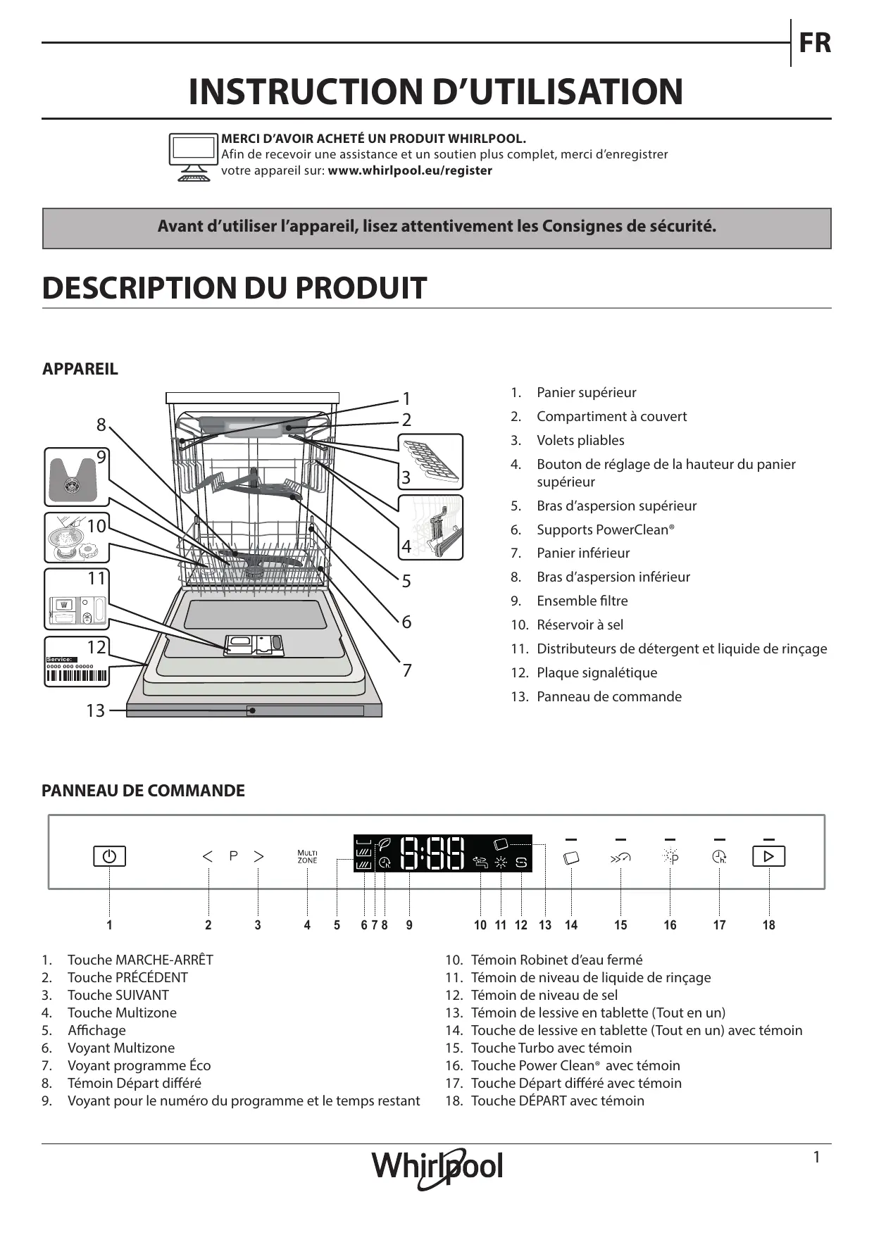 MERCI D’AVOIR ACHETÉ UN PRODUIT WHIRLPOOL. Afin de recevoir une assistance et un soutien plus complet, merci d’enregistrer votre appareil sur: www.whirlpool.eu/register Avant d’utiliser l’appareil, lisez attentivement les Consignes de sécurité.