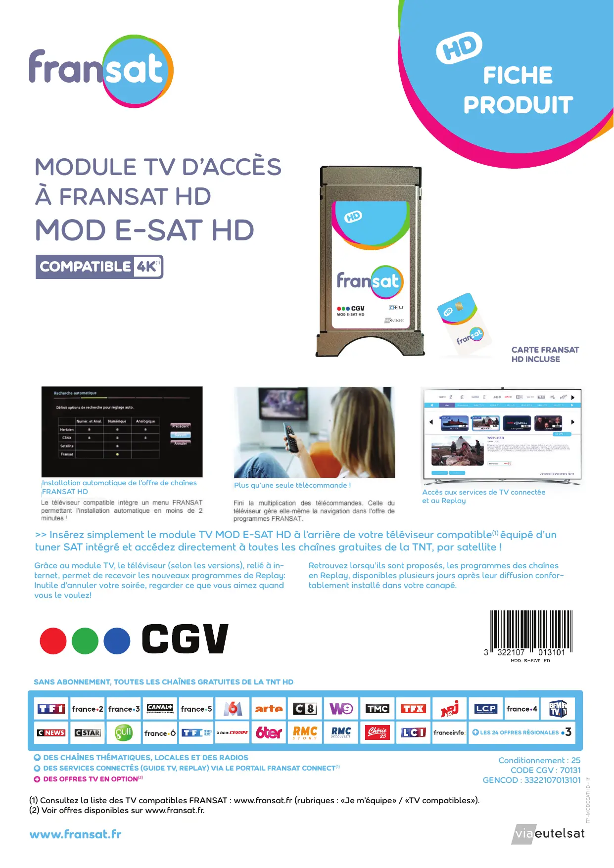 MODULE CI ESAT HD FRANSAT - CGV - Notice d'utilisation et mode d'emploi gratuit