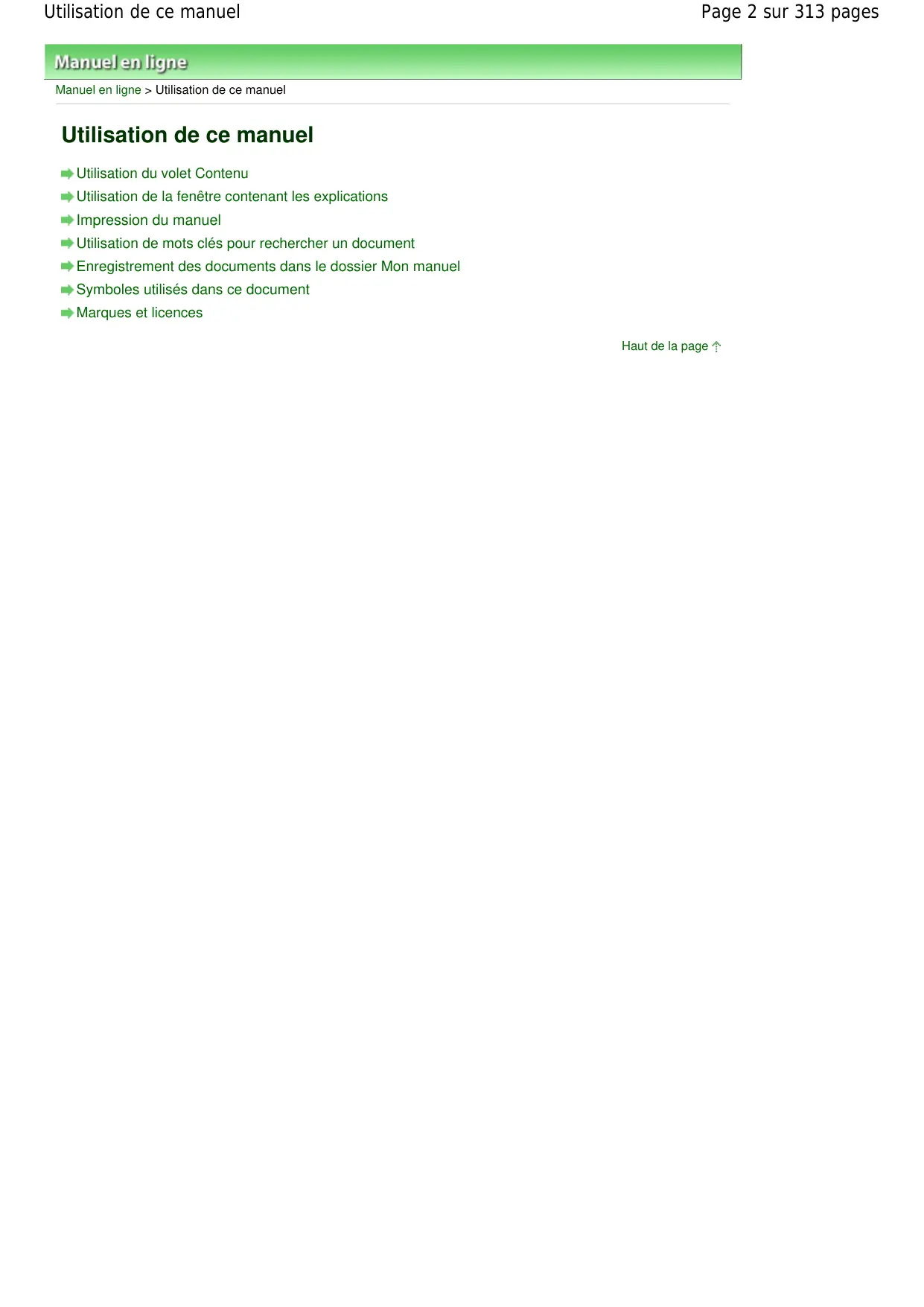 Manuel en ligne > Utilisation de ce manuel > Impression du manuel