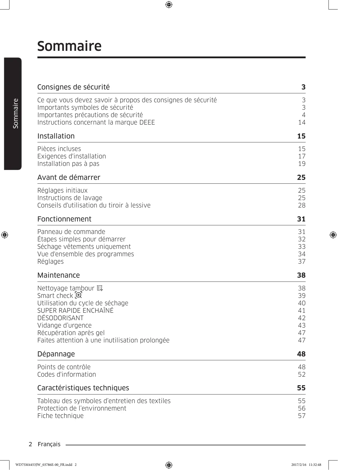 | Lavage, essorage et séchage | l | 88 |