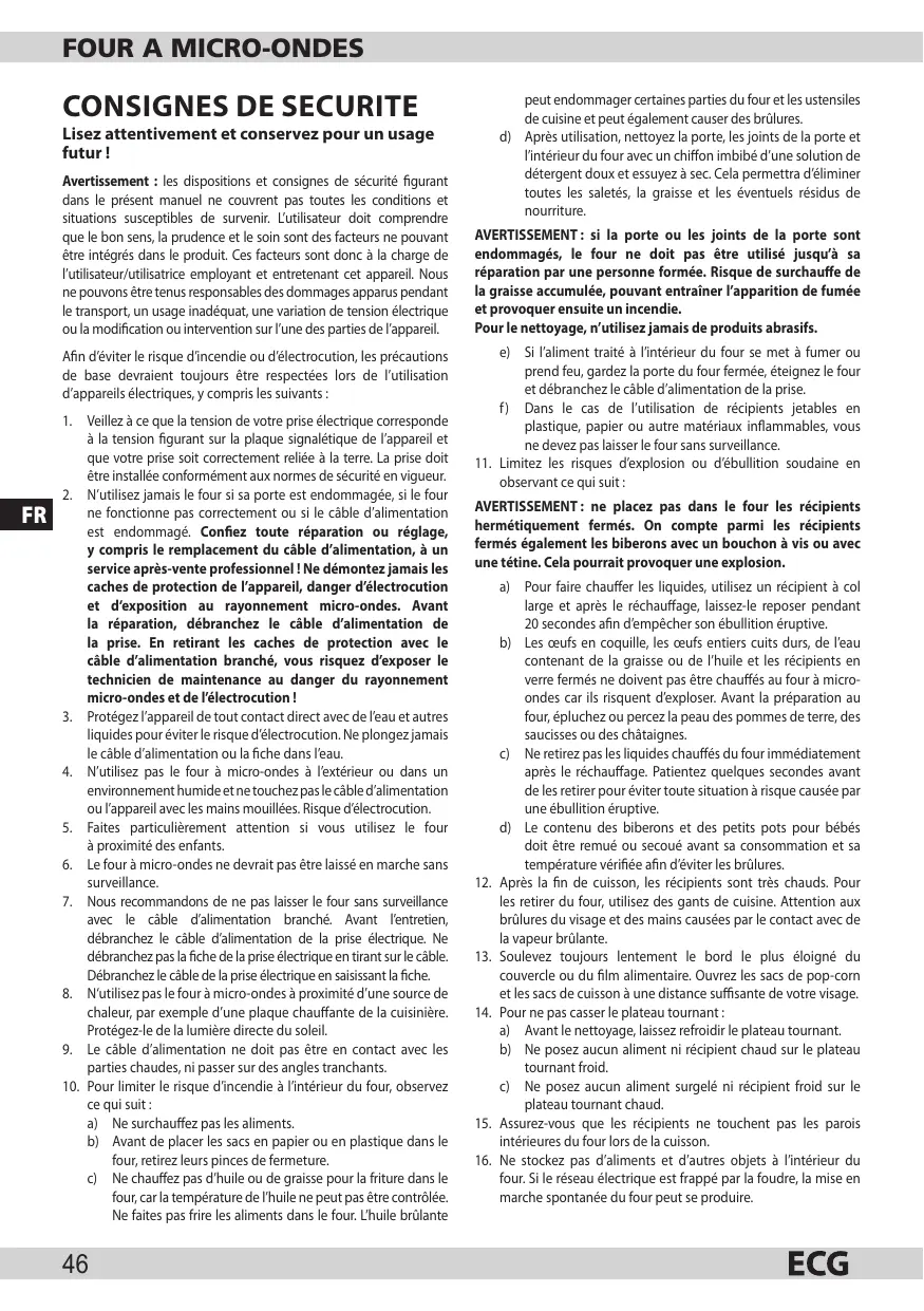 19. Utilisez le four à micro-ondes uniquement en respectant