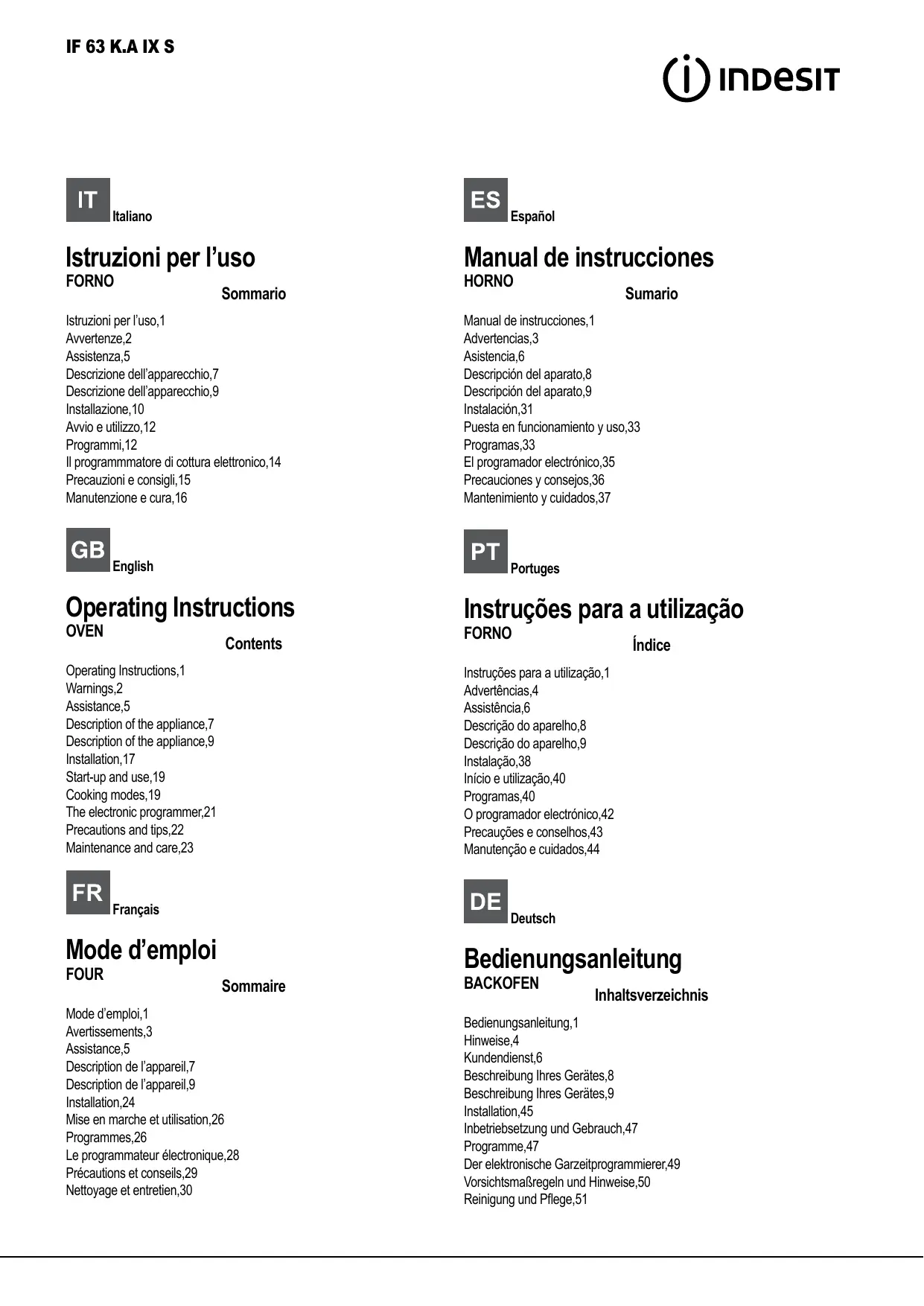 IF 63KA IX - Four encastrable INDESIT - Notice d'utilisation et mode d'emploi gratuit