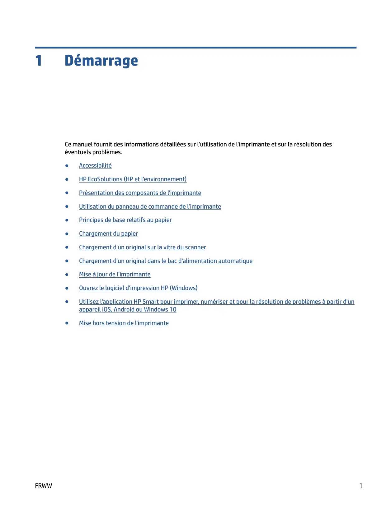 - Utilisez l'application HP Smart pour imprimer, numériser et pour la résolution de problèmes à partir d'un appareil iOS, Android ou Windows 10 p. 31