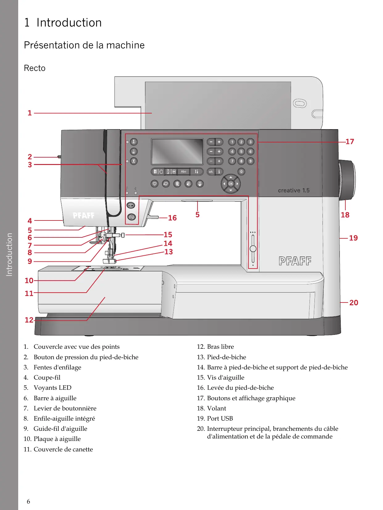 Vous avez fait l'achat d'une machine à coudre et à broder moderne et pouvant être mise à jour. Comme nous sortons régulièrement des mises à jour des logiciels, il est possible que vous trouviez certaines différences entre le logiciel de la machine et celui décrit dans le Guide de l'utilisateur. Consultez votre distributeur local agréé PFAFF® et ne manquez pas de visiter notre site Internet www.pfaff.com pour obtenir les toutes dernières mises à jour du logiciel ainsi que le mode d'emploi. Nous nous réservons le droit de modifier l'équipement de la machine et le jeu d'accessoires sans préavis ainsi que les performances ou la conception. Ces éventuelles modifications seront toujours apportées au bénéfice de l'utilisateur et du produit.