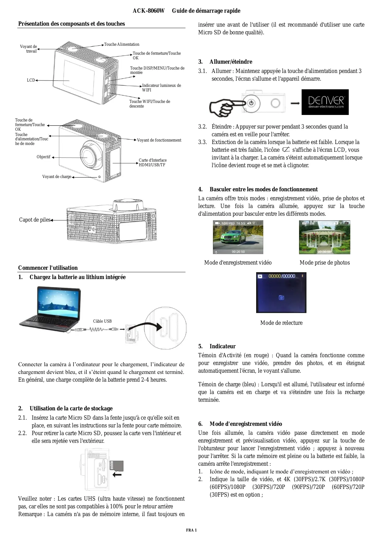 ACK-8060W - Caméra vidéo DENVER - Notice d'utilisation et mode d'emploi gratuit