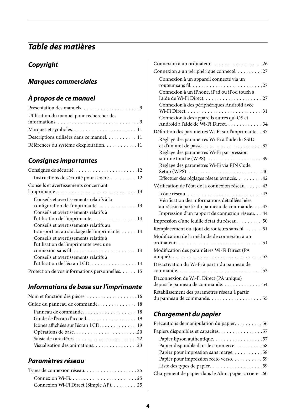 - Connexion Wi-Fi Direct (Simple AP) p. 25
