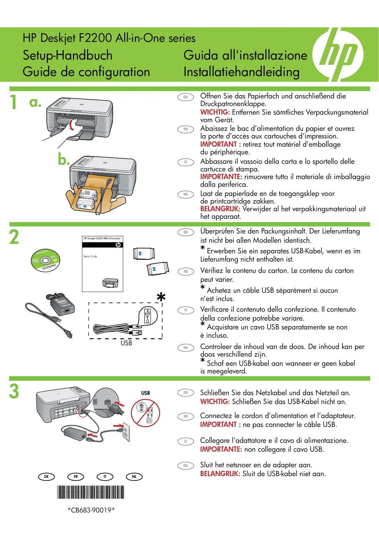 Téléchargez la notice de votre Imprimante multifonction au format PDF gratuitement ! Retrouvez votre notice DESKJET F2280 - HP et reprennez votre appareil électronique en main. Sur cette page sont publiés tous les documents nécessaires à l'utilisation de votre appareil DESKJET F2280 de la marque HP.