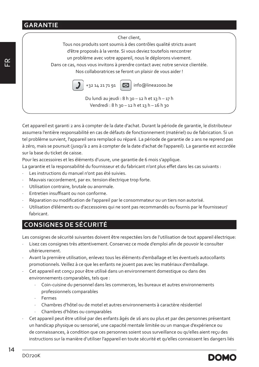 DO720K - DOMO - Notice d'utilisation et mode d'emploi gratuit