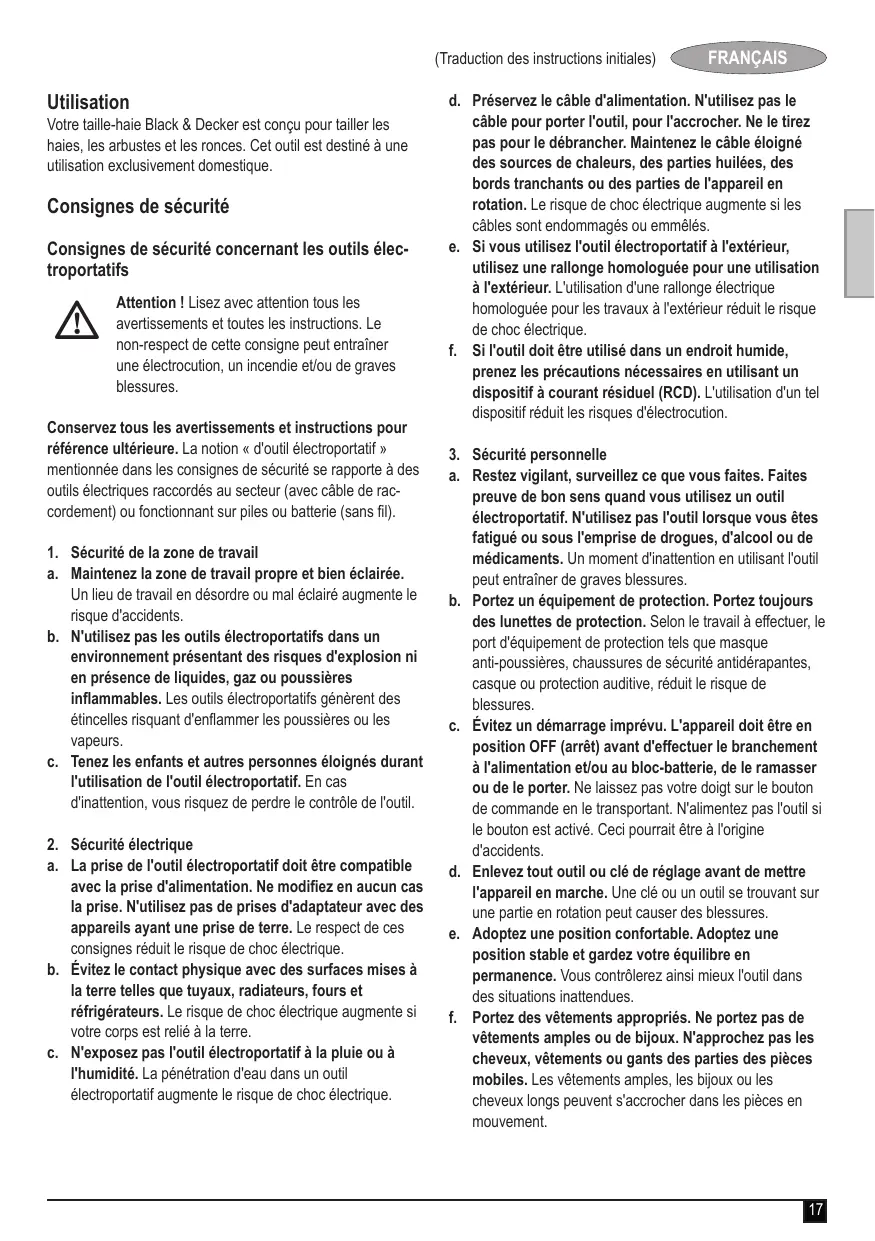 Votre taille-haie Black & Decker est conçu pour tailler les haies, les arbustes et les ronces. Cet outil est destiné à une utilisation exclusivement domestique.